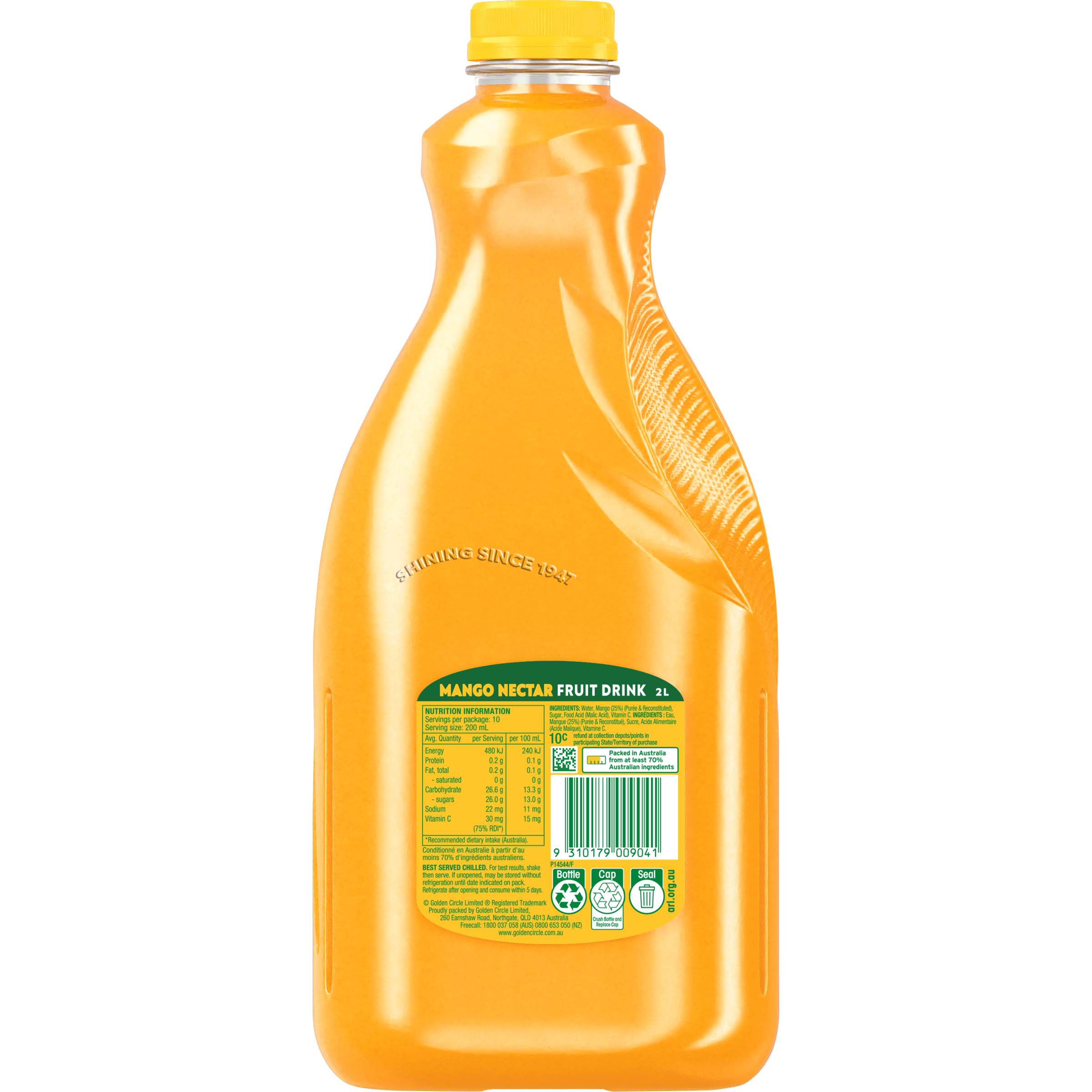 Reminisce on childhoods spent in the sunshine with Golden Circle® Mango Nectar Fruit Drink. This nectar is made with no artificial colours, flavours or preservatives and brings a bright, sweet flavour to smoothies, desserts and even savoury recipes. Golden Circle® Mango Nectar Fruit Drink saves you time in the kitchen, adding mango flavour to sauces, curries and desserts with no preparation needed. A good source of vitamin C, Golden Circle® Mango Nectar Fruit Drink is a summertime barbecue staple. Try blending with frozen banana and pineapple for a tropical smoothie, or using this sweet nectar as a marinade for chicken or pork. Golden Circle®, Share the Sunshine. • No artificial flavours or colours • No preservatives • Great in smoothies and mocktails • Adds a sweet flavour hit to savoury recipes • Good source of vitamin C
