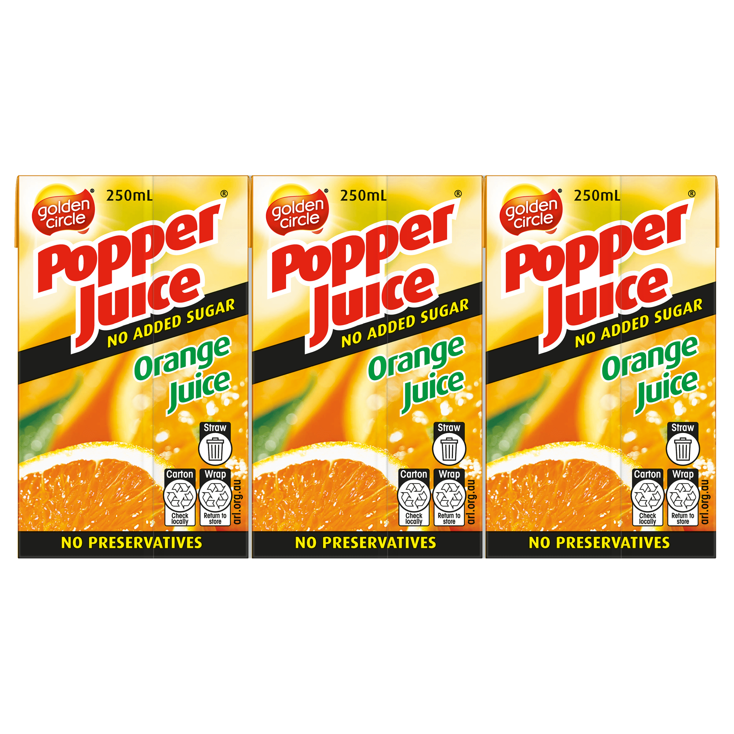 Featuring the refreshing tang of orange, Golden Circle® Popper® Orange Juice is made with over 99% fruit juice and contains no added sugar or preservatives – making it ideal for sporting facilities, theme parks, entertainment venues and more