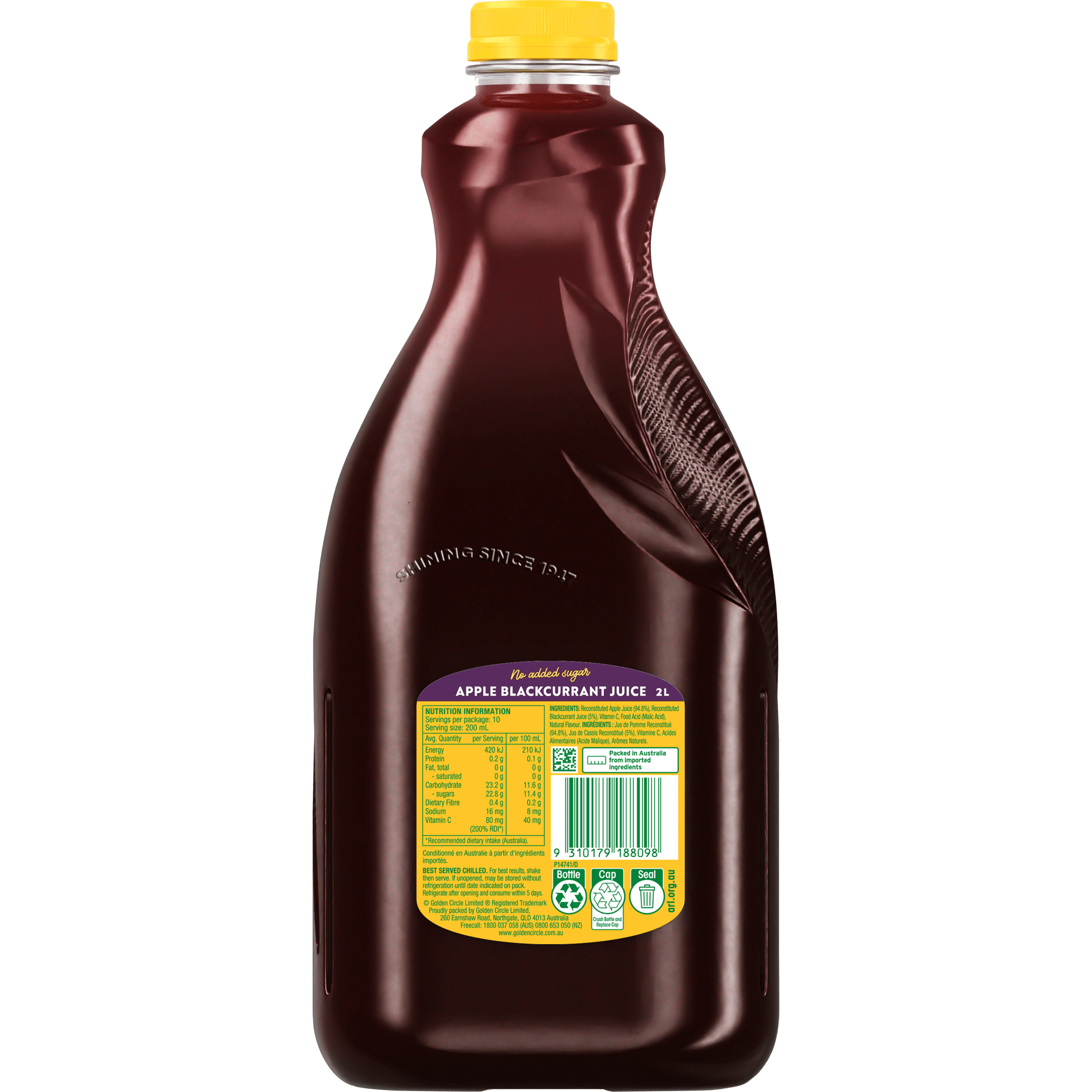 With two favourite juice flavours in one, Golden Circle® Apple Blackcurrant Juice is a must have in any fridge. This classic juice is a family favourite and made with no added sugar. Whether you're spending the day at a backyard barbecue, lying by the pool or reading a book in the sun, you're sure to want an ice cold drink to cool you down. Enjoy a glass of Golden Circle® Apple Blackcurrant Juice poured over ice, or mix with sparkling water for something a little more exciting. Golden Circle® Apple Blackcurrant Juice contains no artificial colours or flavours and is made with no preservatives either. Golden Circle®, Share the Sunshine. • No added sugar • No artificial colours or flavours • No preservatives • Tastes great chilled • Mix with sparkling water for a special treat