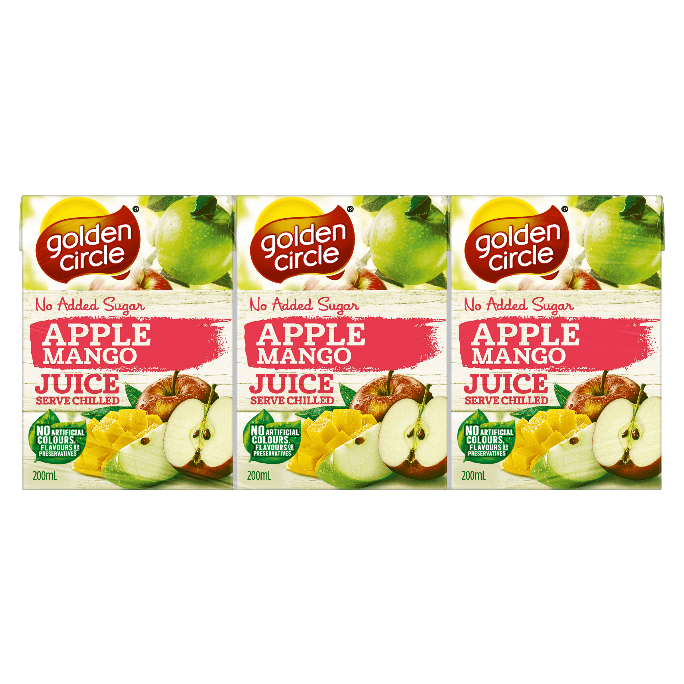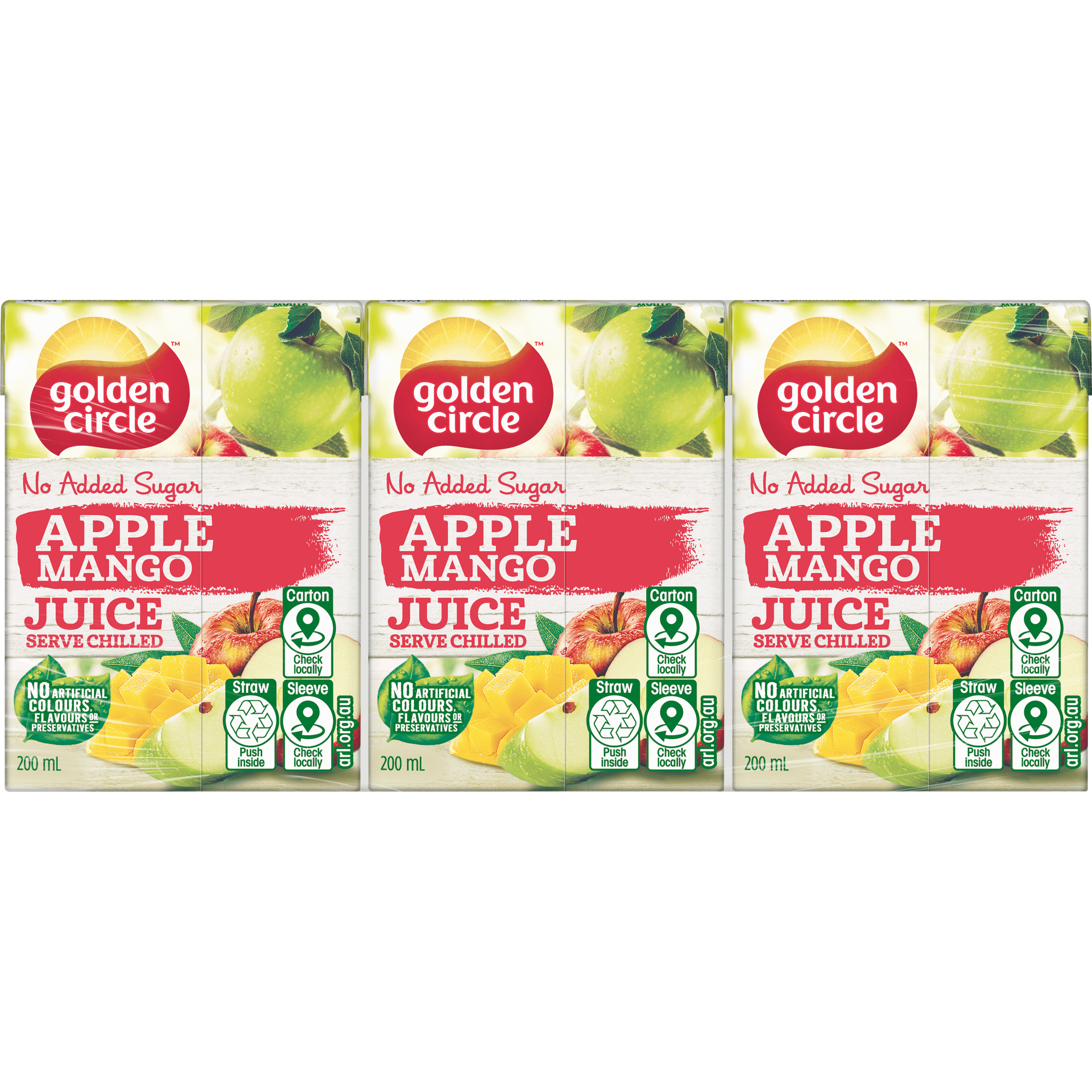 A summery juice that's best served chilled, Golden Circle® Apple Mango Juice No Added Sugar contains no artificial colours, flavours or preservatives. With a combination of apple juice and mango puree this is sure to be a family favourite juice. Made with no added sugar, this juice is great to enjoy with breakfast or with an afternoon snack. On an extra hot day, it can be frozen and eaten with a spoon for a tasty and cooling treat. It's also easy to grab for on the go, picnics and beach days. Golden Circle®, Share the Sunshine. • No added sugar • No artificial colours, flavours or preservatives • Best served chilled • Two favourite flavours in one delicious drink • 200mL size is perfect for on the go