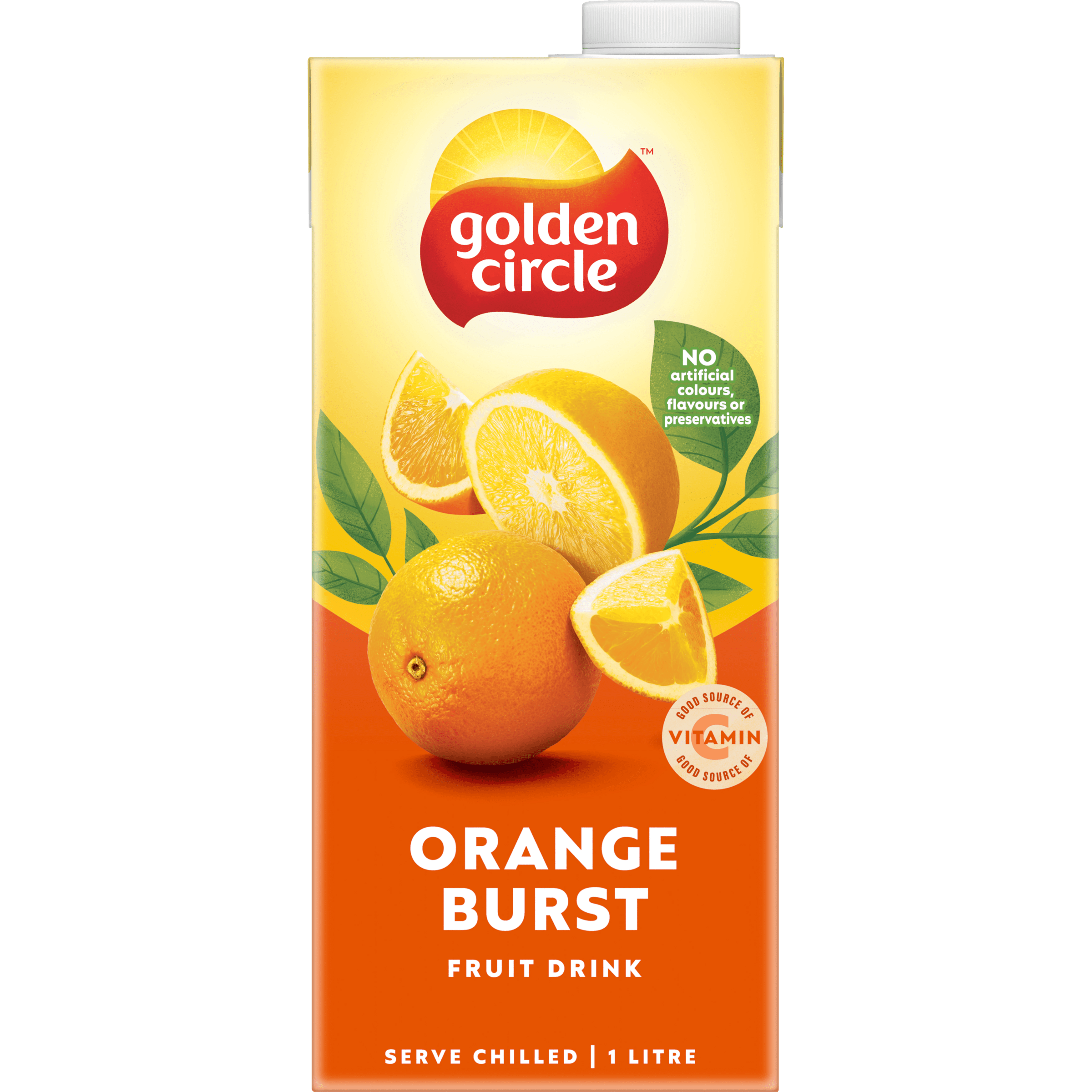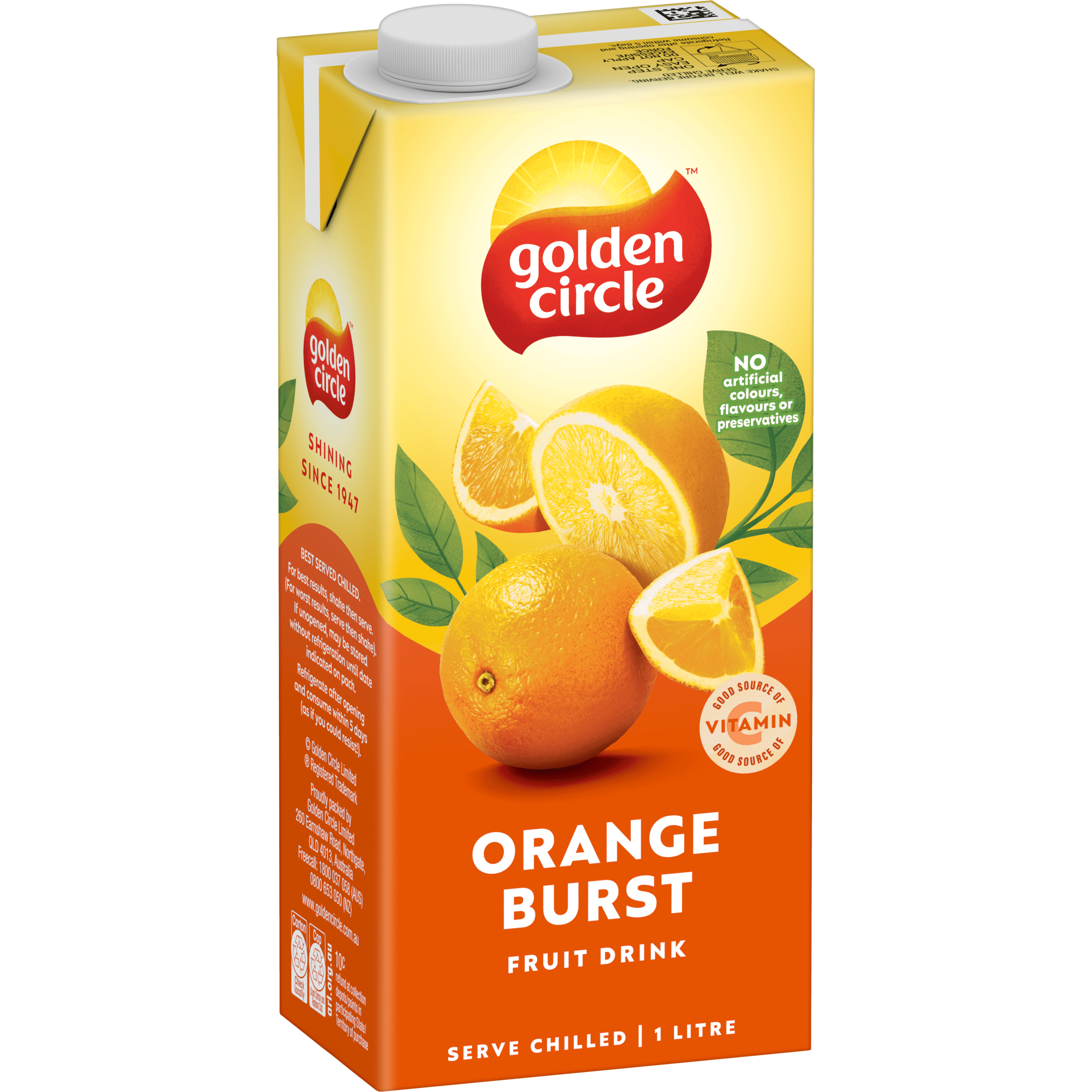 Made with no artificial colours or flavours, Golden Circle® Orange Burst Fruit Drink is a tasty drink to enjoy with meals or snacks. Serve chilled, over ice or in a fruit punch. Great with breakfast, Golden Circle® Orange Burst Fruit Drink contains no preservatives. It's a tasty drink for summer days - try it blended into a fruity smoothie or in a jug with frozen fruit pieces on a hot summer's day to keep the whole family smiling. Golden Circle®, Share the Sunshine. • No artificial colours or flavours • Great for enjoying with breakfast • Can be blended into smoothies, mocktails and cocktails • Contains no preservatives • Serve chilled or over ice