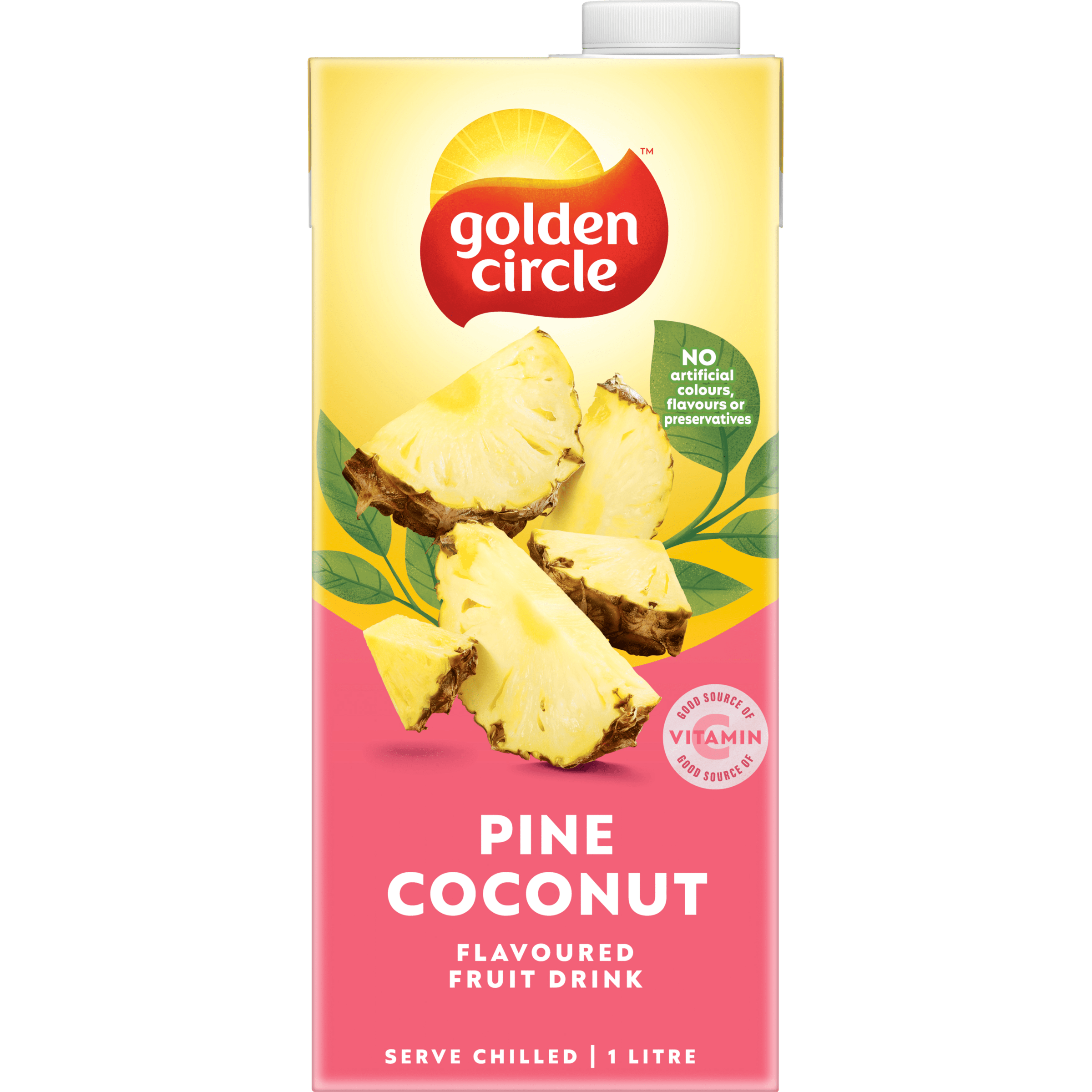 Quench your family's thirst and add a burst of fruity flavour to any occasion with Golden Circle® Pine Coconut Fruit Drink. <b><b> Deliciously Refreshing <b><b> Say goodbye to artificial ingredients and hello to a refreshingly delicious Pine Coconut Flavoured fruit drink. Keep your whole family hydrated with a refreshing Golden Circle fruit drink essential. <b><b> Family-Friendly & Versatile <b><b> Provide your family with a delicious and wholesome drink option that everyone will love, whether at home or out and about. This fruit drink is crafted to bring smiles, free from artificial additives, and is a good source of Vitamin C. <b><b> Your Go-To for Every Occasion <b><b> Have this refreshingly fruity drink for any occasion. Whether during spontaneous picnics in the park, beach days, or for summer camping trips, Golden Circle® Pine Coconut Flavoured Fruit Drink is designed for enjoyment at any time throughout the day (and night!). Enjoy it chilled for instant refreshment, or freeze into fun iceblocks for a cool treat. <b><b> Trusted By Aussies <b><b> Golden Circle®, a name trusted by Australian families, has been sharing the sunshine for generations. Our Pine Coconut Flavoured Fruit Drink continues this tradition, offering a product that's not only delicious but also a good source of Vitamin C. <b><b> • Delicious Pine Coconut Flavour: Enjoy the sweet and tangy combination of real fruit juice for a refreshing taste. • No Nasties: Free from artificial colours, flavours, and preservatives, giving you peace of mind with every sip. • Good Source of Vitamin C: Contributes to your daily nutrient intake while you enjoy a tasty drink. • Versatile Refreshment: Best served chilled, or transform into fun iceblocks for a delightful summer treat.