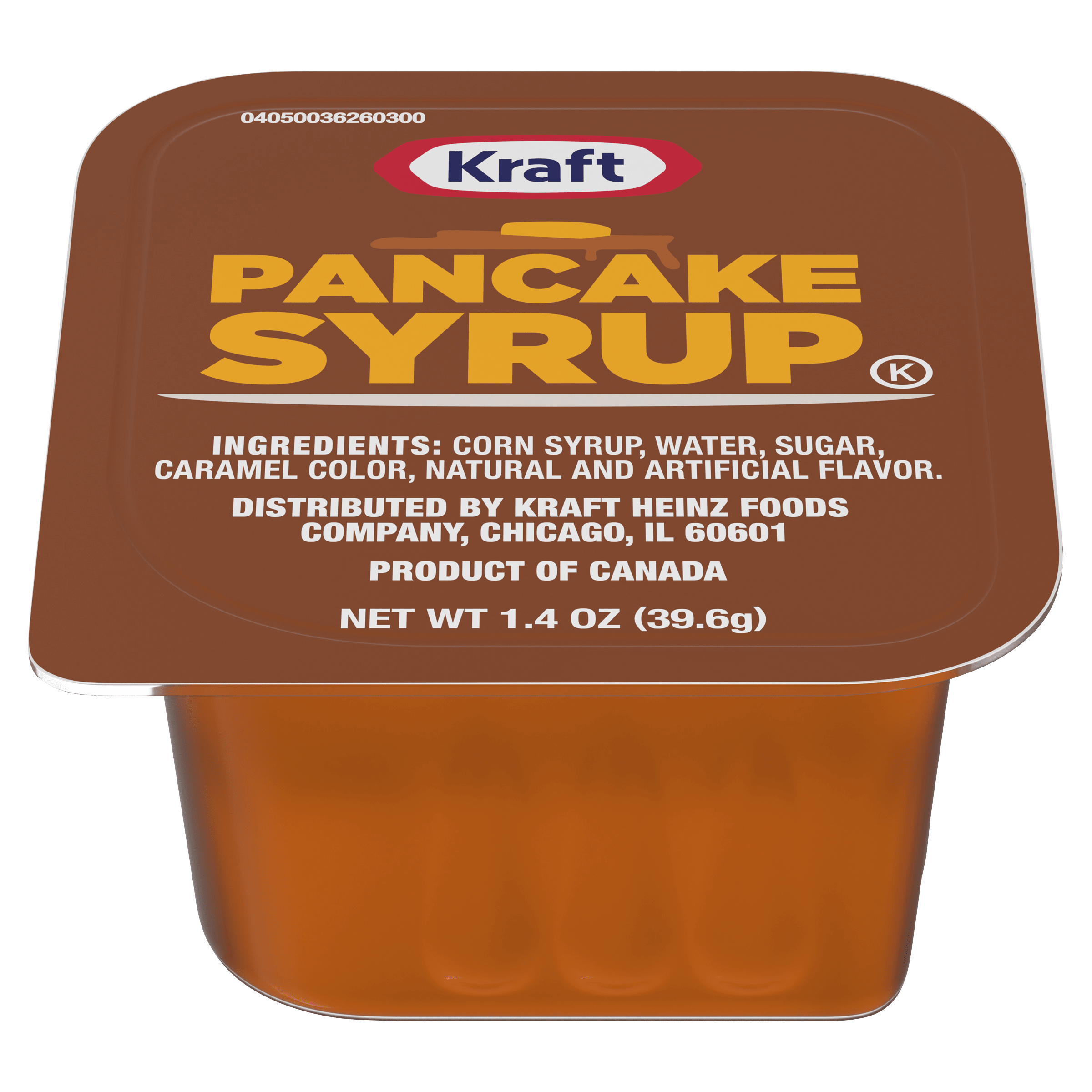 Kraft Pancake Syrup single serve 1.4 oz. cups (120 per case) offer customers classic maple flavor in an easy to-go format. A great choice for restaurants, cafeterias, fast food, concessions and more, our syrup is perfect for serving with a wide variety of breakfast cuisines. Amber-colored with a rich maple flavor, our syrup brings a sweet taste of home to the table. Kraft syrup is an essential dipping sauce or topping for breakfast favorites such as pancakes, waffles, french toast and more. Individual serving condiment cups make both takeout and delivery service convenient for both customers and staff. At home and away from home, consumers know and love the great taste of Kraft.