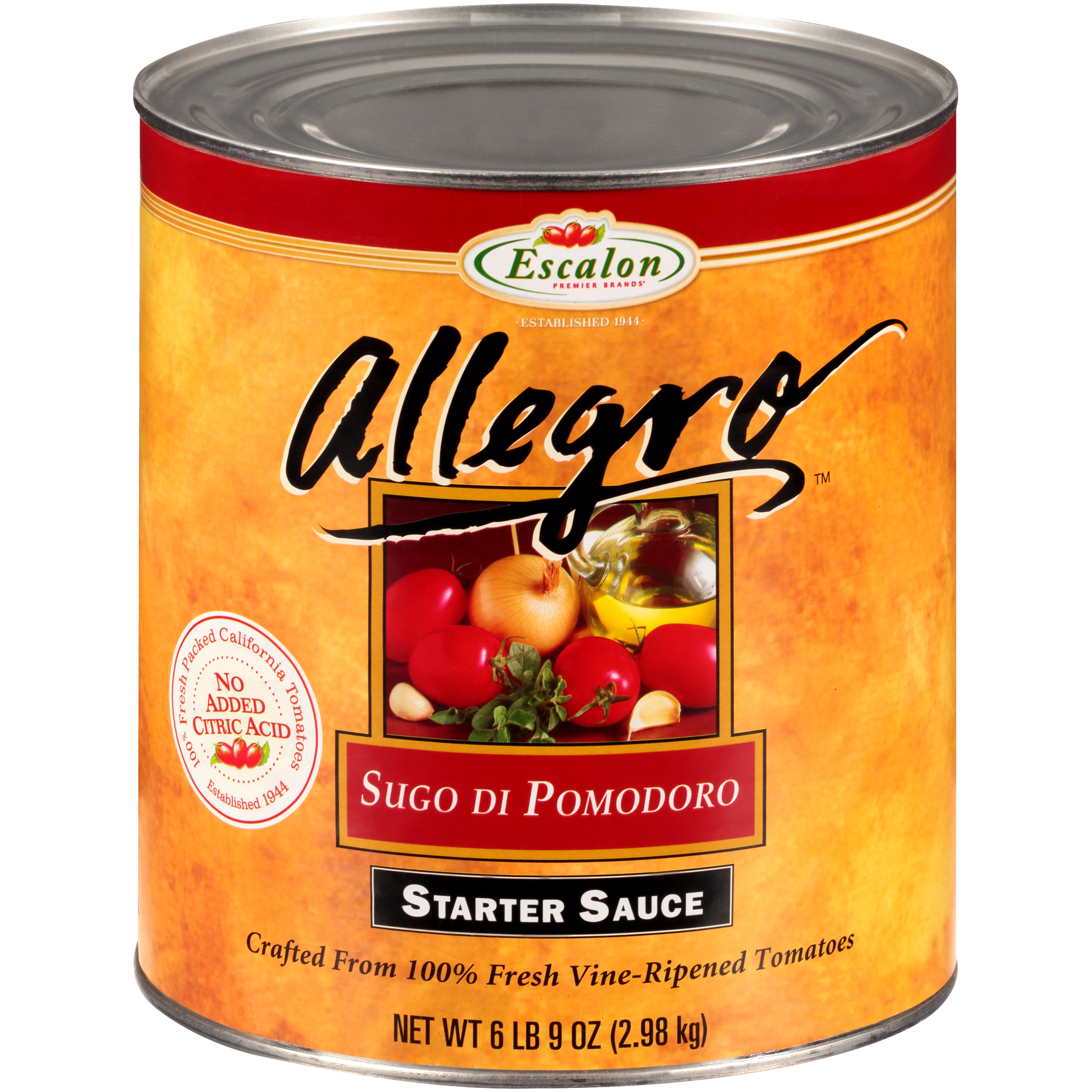 La Sugo Di Pomodoro de ALLEGRO® proporciona una base sabrosa con trozos de tomates pelados. Los principales sabores de la salsa son el tomate, la cebolla y el ajo. Este producto puede utilizarse tal cual o el chef experto puede crear una salsa única añadiendo su propio perfil de especias.