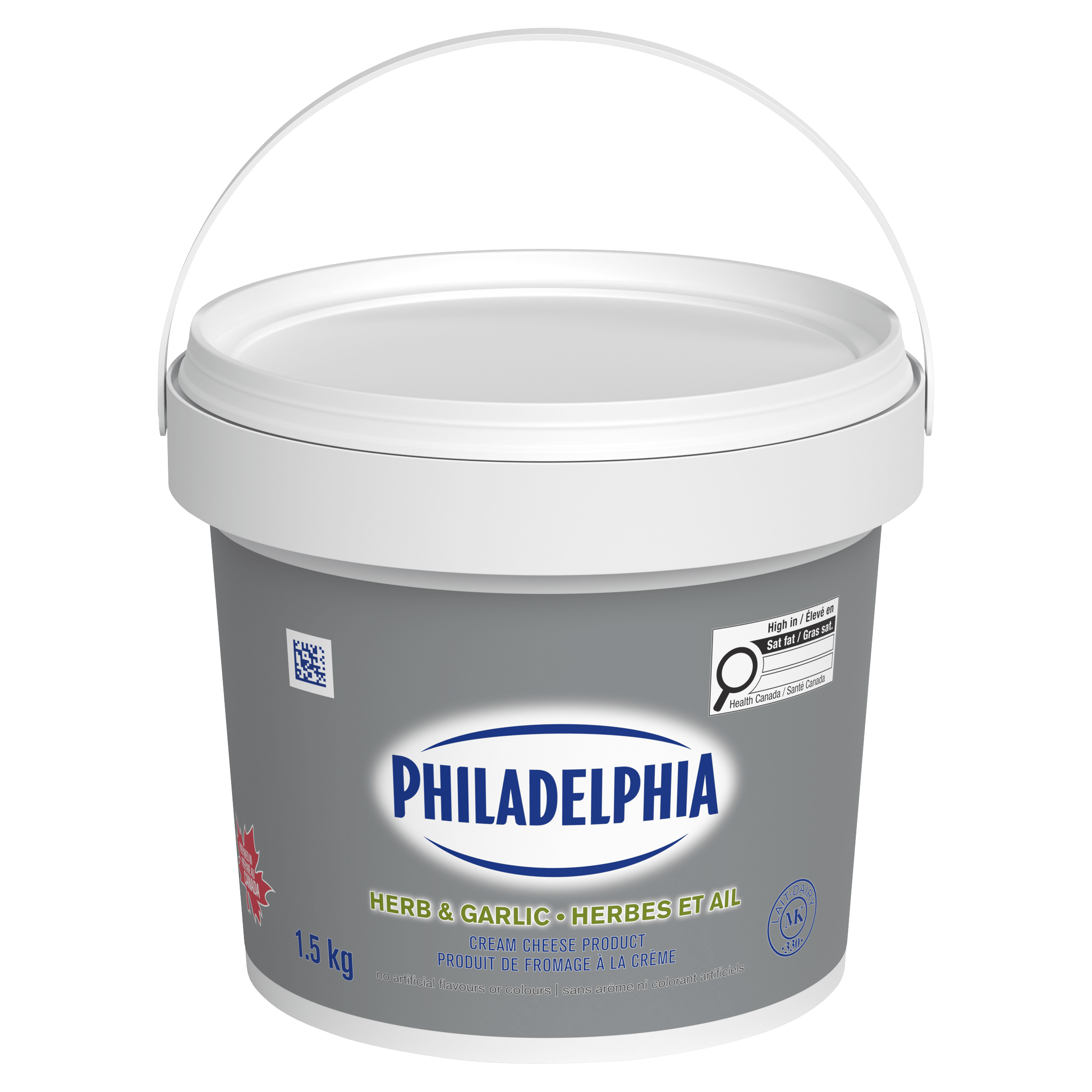 Philadelphia, élue marque de fromage à la crème la plus fiable, selon l'étude de confiance BrandSpark® canadienne 2025.* Savourez le goût crémeux et riche du produit de fromage à la crème Philadelphia herbes et ail. Notre seau de 1,5 kg est idéal pour un usage commercial, de grands événements ou pour s'assurer que votre réfrigérateur est bien approvisionné. Découvrez des possibilités infinies avec le produit de fromage à la crème Philadelphia herbes et ail. En savoir plus sur nos produits et obtenir d'excellentes idées de recettes de fromage à la crème. Nous utilisons des produits laitiers de qualité, des fruits et légumes soigneusement sélectionnés, et choisissons des combinaisons de saveurs délicieuses, donc au final, tout semble un peu mieux avec le goût crémeux de Philly. *Philadelphia, élue marque de fromage à la crème la plus fiable par les acheteurs canadiens selon l'étude de confiance BrandSpark® canadienne 2025.