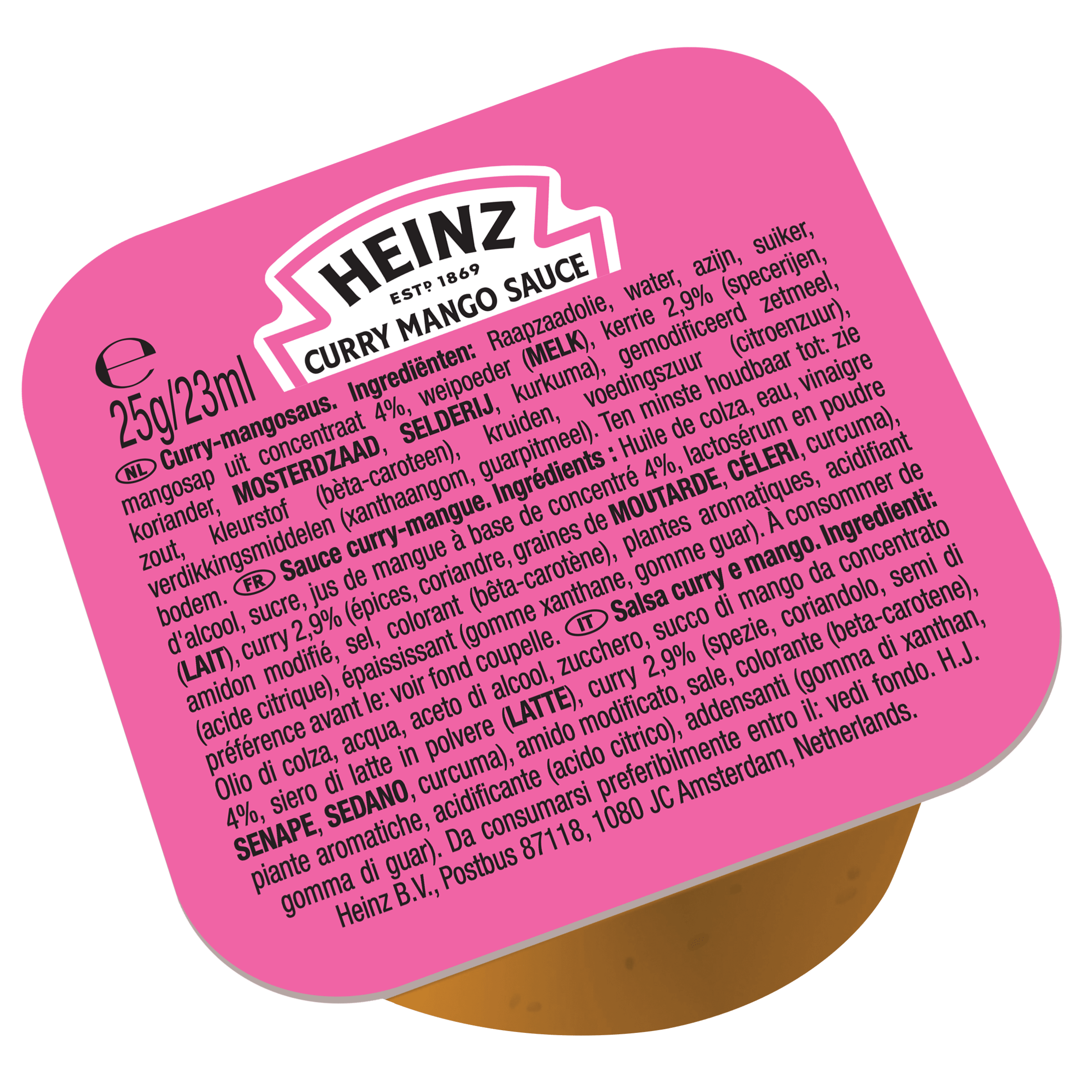 - Sauce fruitée et épicée Indian style - À base de mangues fraîches - Idéale pour les légumes crus, le poulet, les fruits de mer, les sandwichs et les burgers Notre sauce sucrée salée Curry Mango Heinz est généreuse et apportera une touche d’exotisme à chacun de vos plats. Cette sauce exotique épicée à base de mangues fraîches aux notes d'abricot, relevée au curry vous fera chavirer. Notre sauce relèvera parfaitement les légumes crus, le poulet, le poisson, les sandwichs et les burgers. Le petit format de 25g vous permet un contrôle des coûts grâce à la plus modeste portion de sauce disponible. Format pratique, idéal pour les établissements à forte fréquentation, à emporter ou en livraison à domicile. Notre sauce Curry Mango existe aussi en format flacon 940g et flacon 225g.