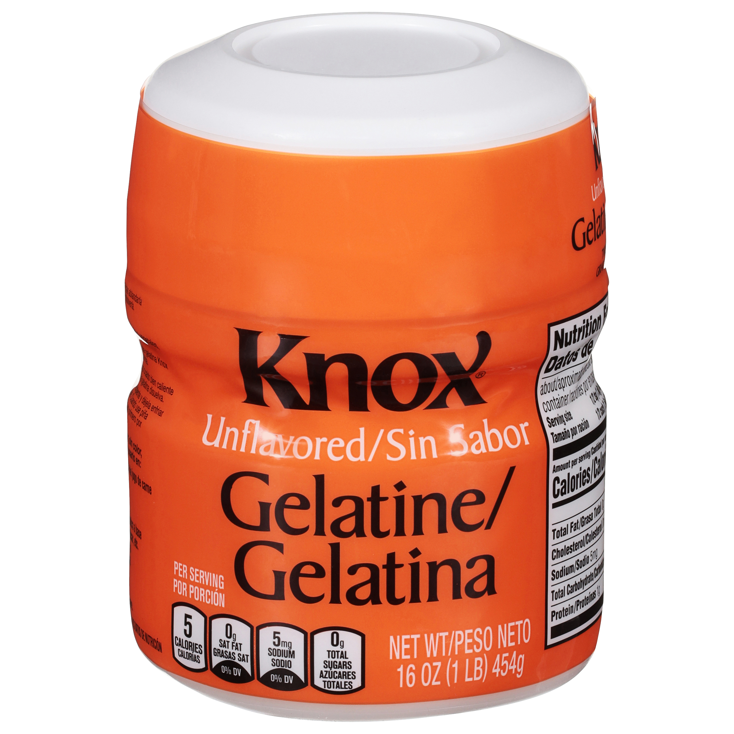 Knox Unflavored Gelatine 16 oz. canisters (12 per case) is an essential kitchen ingredient for making a wide variety of dishes. This unflavored gelatin powder provides the ideal texture you want while offering creative freedom over recipe customization. With zero carbs and just 5 calories per serving, our unflavored gelatin is great for making desserts, salads, main dishes, jams, jellies, ice cream and frozen yogurt. Our gelatin is also an effective thickening agent for cheesecakes, parfaits and more. Each resealable 16-ounce canister delivers lasting freshness and an extended shelf life. At home and away from home, consumers know and love Knox.