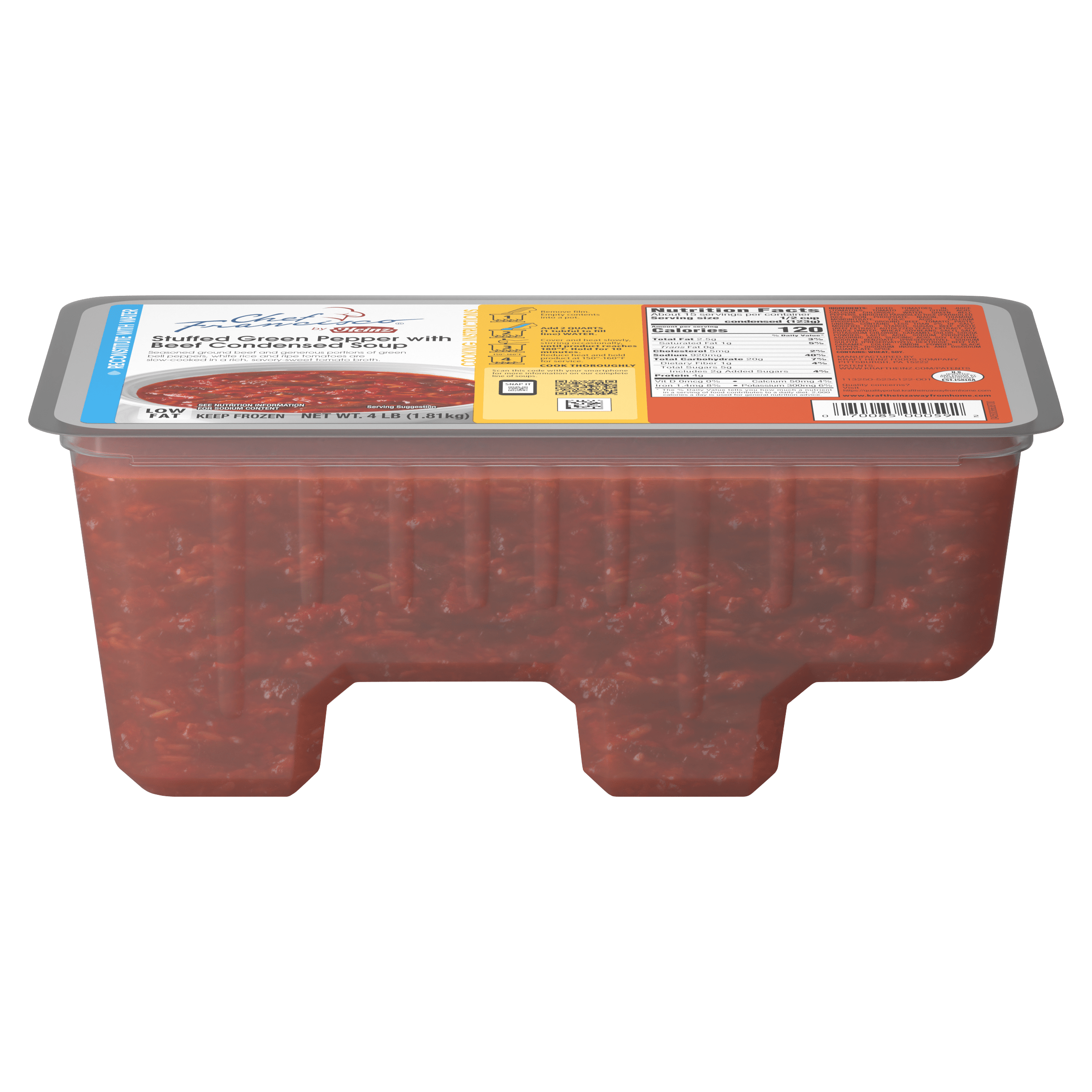 Chef Francisco Stuffed Green Pepper Soup - 4 lb. tub, 4 per case. A distinctive menu addition that combines chunks of green bell peppers, ground beef, white rice and tomato pieces. Chef Francisco by Heinz pioneered the concept of frozen soup more than 30 year ago. Heinz understands your need for convenient foods that deliver on nutrition, value and versatility. Who can do all that? Heinz Soups can. Our soups can be your partner in the kitchen, helping you solve the challenges you face every day. With cost-effective options that allow you to be creative in the kitchen for your family, Heinz Soups help you to satisfy nutrition program requirements while you create a multitude of appealing and delicious recipes. Discover Heinz Soups. Meet the demands of USDA guidelines for child nutrition with a variety of soups that can satisfy meal equivalent needs and meet today’s lower-sodium menu requirements—whether served as is, or as an integral part of a tasty recipe.