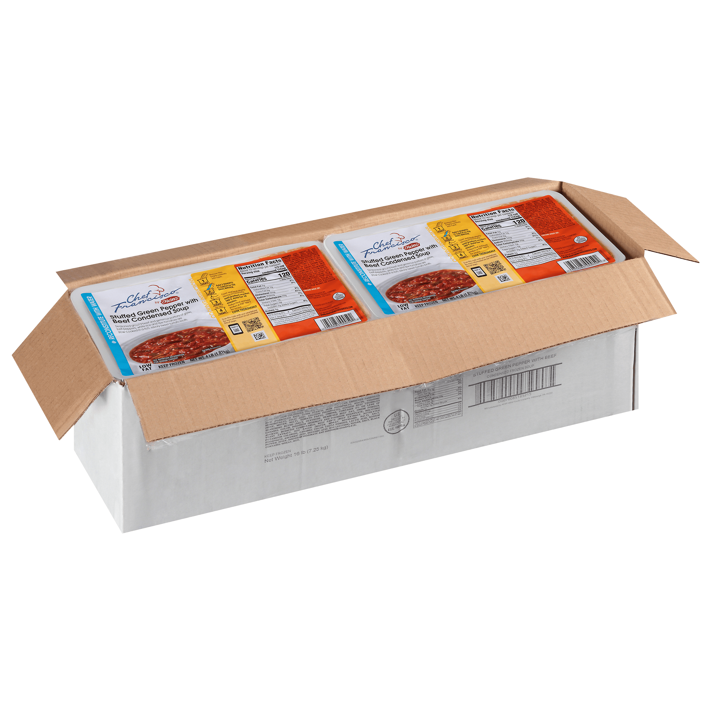 Chef Francisco Stuffed Green Pepper Soup - 4 lb. tub, 4 per case. A distinctive menu addition that combines chunks of green bell peppers, ground beef, white rice and tomato pieces. Chef Francisco by Heinz pioneered the concept of frozen soup more than 30 year ago. Heinz understands your need for convenient foods that deliver on nutrition, value and versatility. Who can do all that? Heinz Soups can. Our soups can be your partner in the kitchen, helping you solve the challenges you face every day. With cost-effective options that allow you to be creative in the kitchen for your family, Heinz Soups help you to satisfy nutrition program requirements while you create a multitude of appealing and delicious recipes. Discover Heinz Soups. Meet the demands of USDA guidelines for child nutrition with a variety of soups that can satisfy meal equivalent needs and meet today’s lower-sodium menu requirements—whether served as is, or as an integral part of a tasty recipe.
