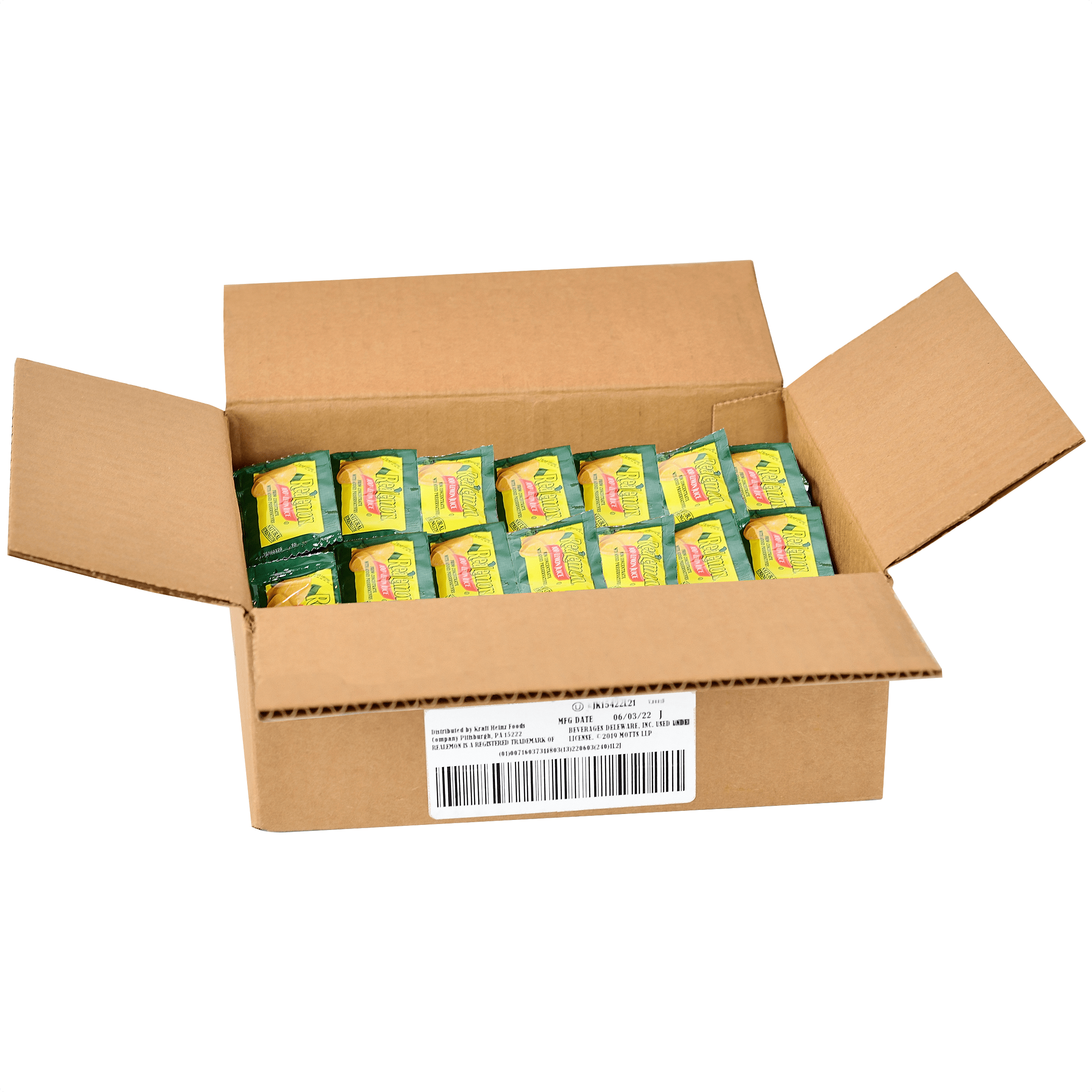 ReaLemon Lemon Juice single serve 4 gm. packets (200 per case) are convenient for front-of-house use in restaurants, cafeterias, concessions and more. Made with 100% lemon juice from concentrate with added preservatives, our on-the-go packets provide a more sanitary and economical alternative to offering lemon wedges. With a natural, fresh lemon flavor, ReaLemon lemon juice packets are perfect for spritzing fish and other seafood, or to provide as an addition to water and other beverages. At home and away from home, consumers know and love the great taste of ReaLemon.