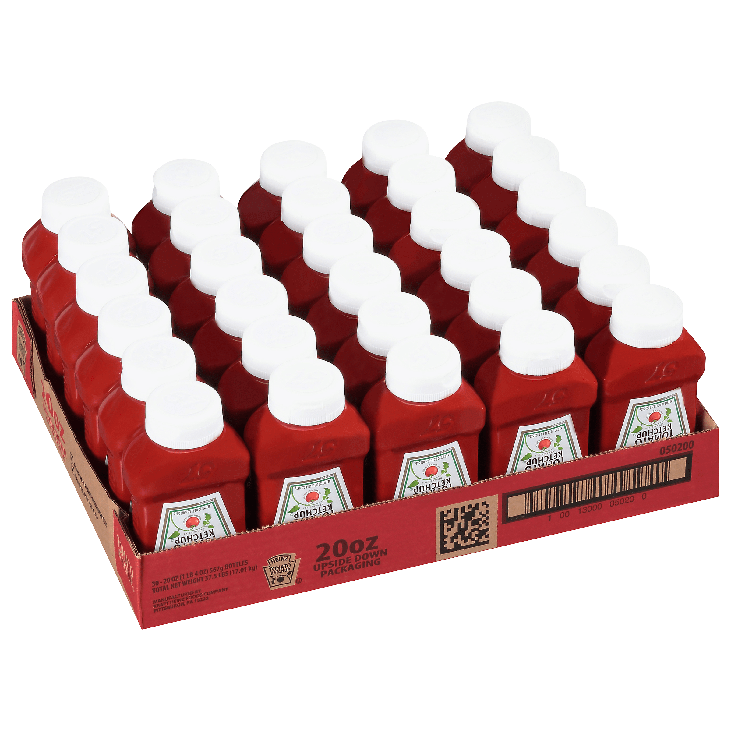 Heinz Ketchup 20 oz. Forever Full Inverted Bottles (30 per case) are ideal for table top placement in sit down restaurants. Featuring a Forever Full solid red bottle design, the container maintains a full appearance between replacement. Made from sweet, juicy, ripe tomatoes for that signature thick and rich taste, your patrons will love America's Favorite Ketchup®. Nothing else tastes like Heinz and that's why our tomatoes come from Heinz seeds grown by farmers we know and trust. Whether atop your restaurant's signature burger or on the side of a delicious plate of fries, your customers will be happy you use Heinz. For over 150 years, Heinz has been America's Favorite Ketchup®. At home and away from home, consumers know and love the great taste of Heinz.
