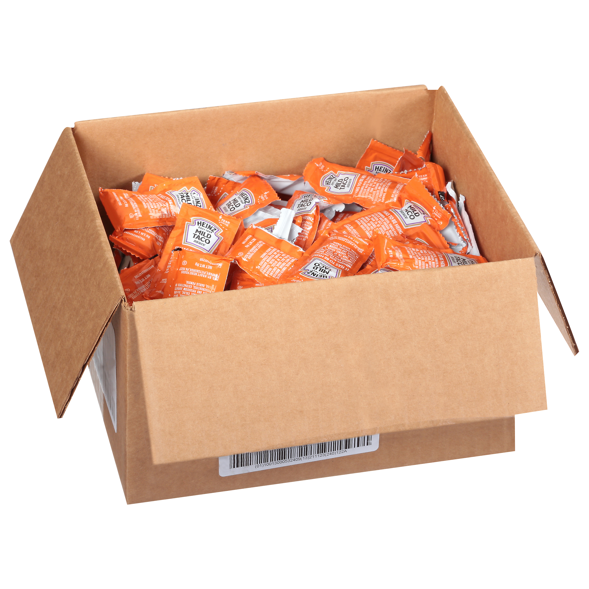 Heinz Mild Taco Sauce single serve 9 gm. packets (200 per case) are a convenient choice for commercial kitchens, restaurants, concessions, food trucks and more. Made with robust tomato puree blended with subtle, aromatic spices, this smooth, zesty sauce gives an extra kick to your restaurant’s signature dishes. Our mild taco sauce is a flavorful condiment that customers love adding to nachos, tacos, burritos and other Mexican and Latin dishes. Whether your customers are dining in or picking up a to-go order, our sauce packets make it simple for them to customize the flavor profile of their own meal. At home and away from home, consumers know and love the great taste of Heinz.