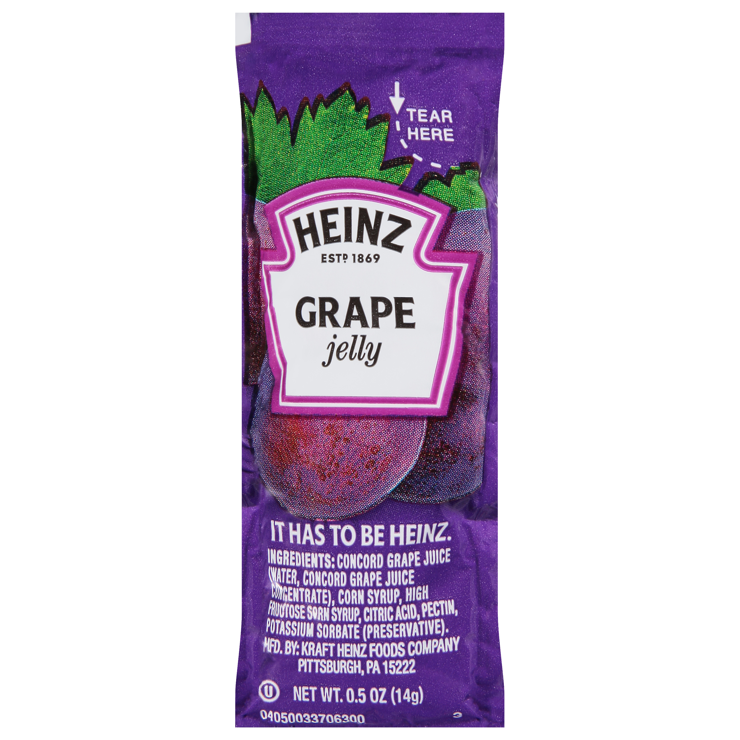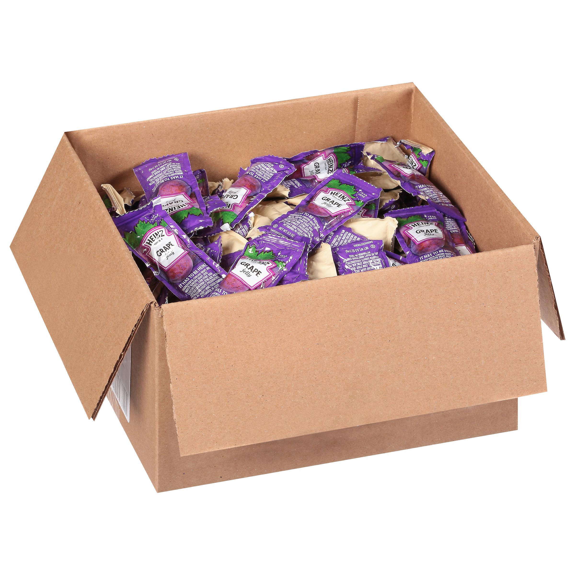Heinz Grape Jelly single serve 0.5 oz. packets (200 per case) are a great choice for restaurants, cafeterias, fast food, takeout, concessions and more. A breakfast and brunch classic, Heinz grape jelly offers a sweet, bright flavor that customers love. Delicious as a spread or topping, these individual serving condiment packets make delivery and takeout service easy and convenient. Made with grape juice and natural and artificial flavors, Heinz Grape Jelly is ideal for spreading on warm buttered toast, English muffins, bagels, pastries and other breakfast favorites. At home and away from home, consumers know and love the great taste of Heinz.