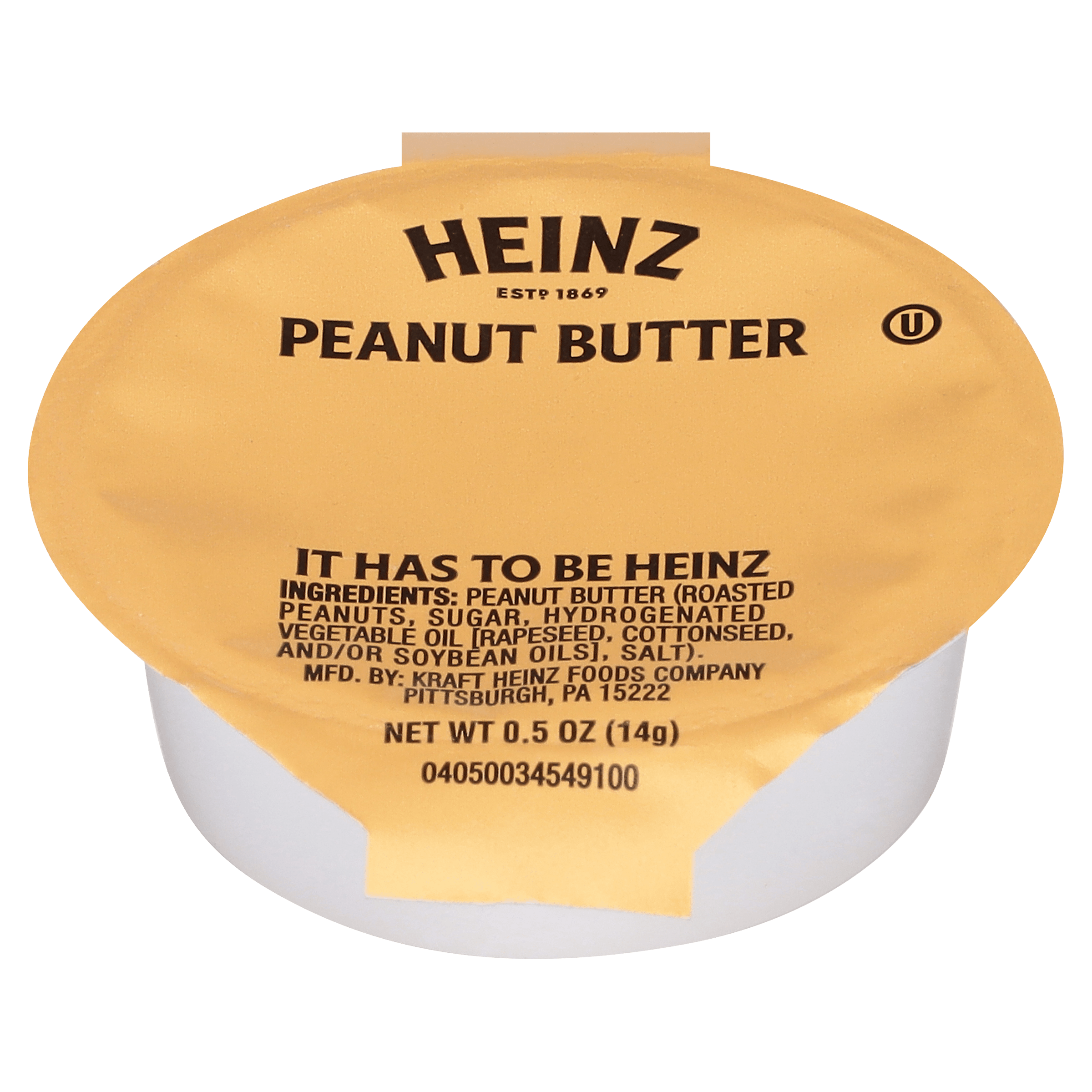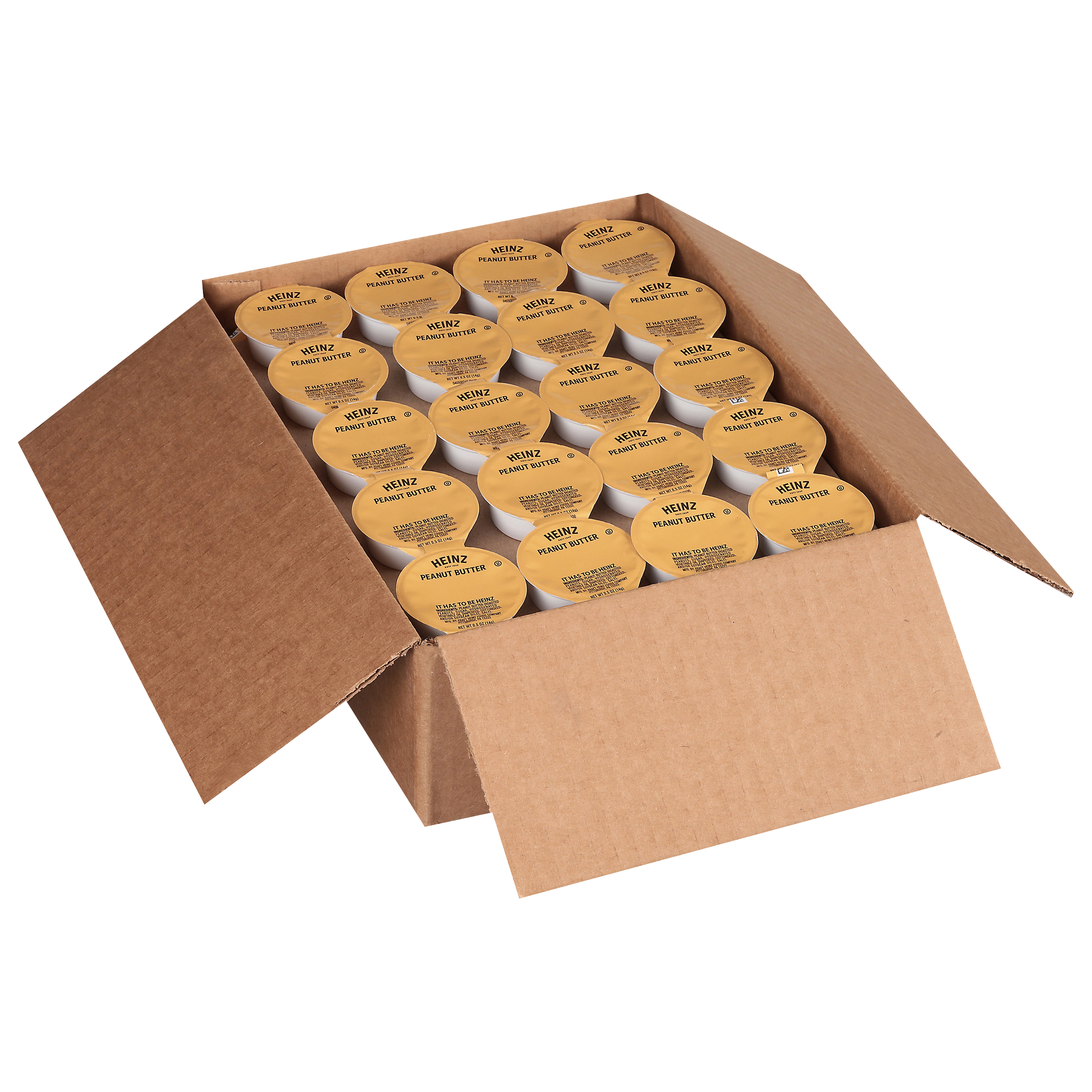 A smooth and creamy classic, Heinz Peanut Butter Single Serve 0.5 oz. Cups (100 per case) are a great choice for restaurants, cafeterias, fast food, takeout, concessions and more. Perfect for serving with a wide variety of breakfast cuisines, lunch items and snacks, Heinz Peanut Butter delivers the salty-sweet, peanuty flavor customers love. Delicious as a spread or topping, these individual serving condiment packets make delivery and takeout service easy and convenient. Made with real roasted peanuts, our peanut butter is ideal for spreading on toast, English muffins, bagels and more or adding to sliced apples or crackers for a kids’ menu snack. At home and away from home, consumers know and love the great taste of Heinz.