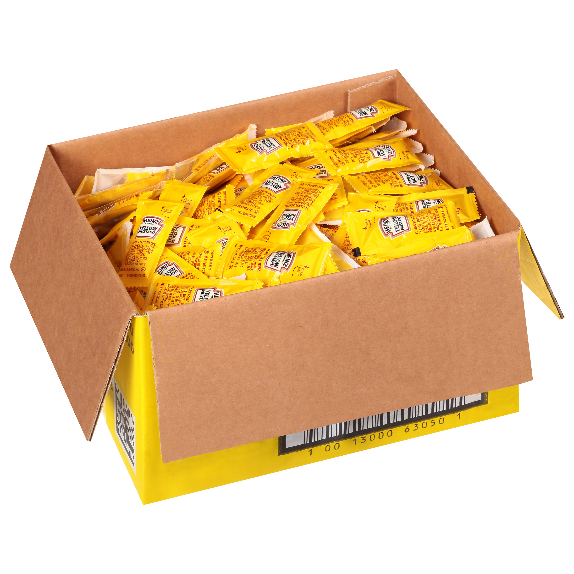 Heinz Yellow Mustard single serve 0.2 oz packets (500 per case) offer a convenient, on-the-go option ideal for commercial kitchens, restaurants, concessions and more. Heinz Mustard is made with #1 grade mustard seeds and a secret blend of spices and vinegar — the perfect balance of flavor and tang. Heinz Yellow Mustard contains no artificial dyes, no artificial preservatives and no artificial flavors. Offer patrons Heinz Yellow Mustard packets with burgers, hot dogs, pretzels, fries, signature deli sandwiches and more. Each case contains 500 packets of mustard. At home and away from home, consumers know and love the great taste of Heinz.