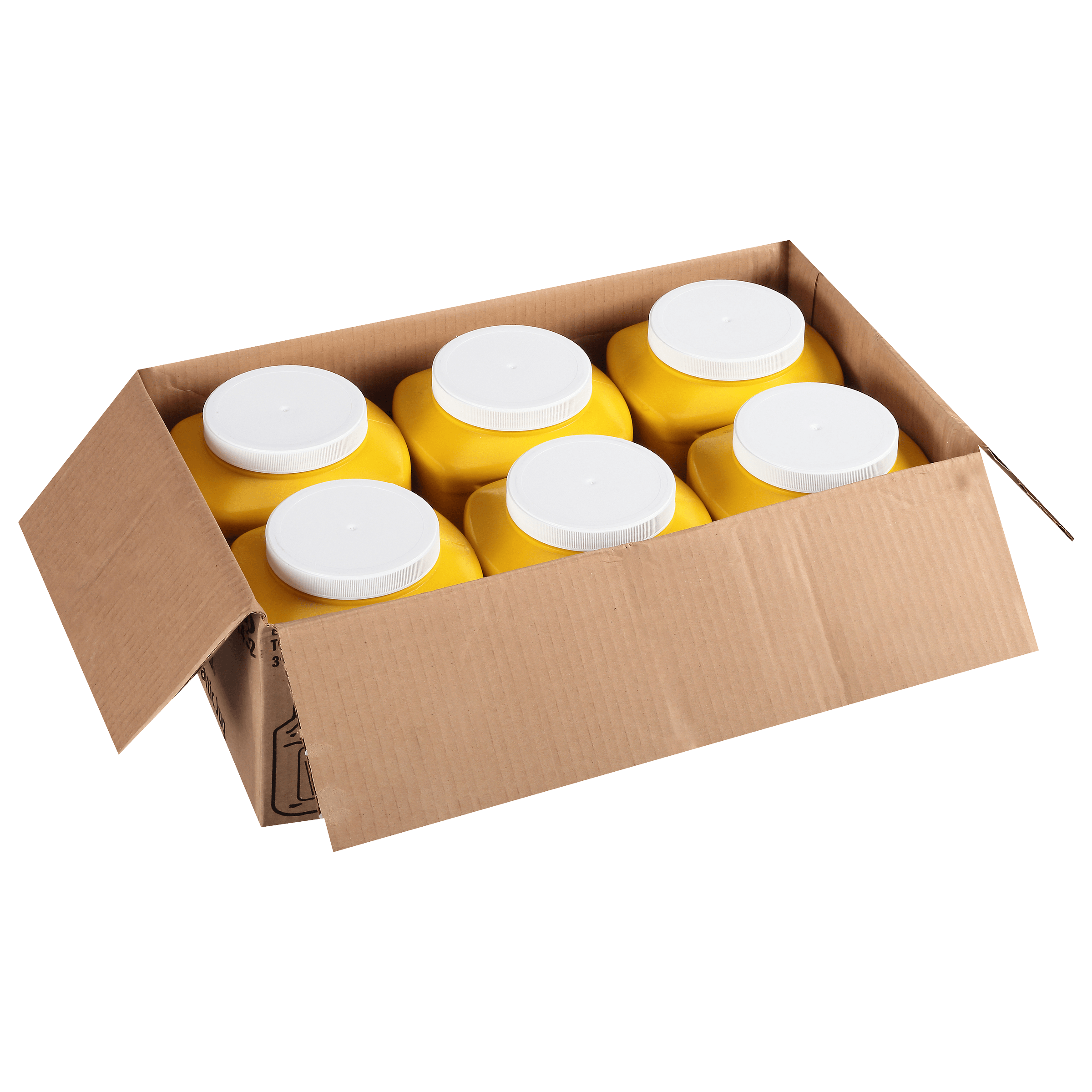 Heinz Yellow Mustard offers the trusted, flavorful taste of classic Heinz Mustard that complements a wide range of foods. Try our yellow mustard on burgers, hot dogs, chicken tenders, fries, pretzels or sub sandwiches. Our versatile mustard is more than a delicious condiment. It's also great as a marinade and glaze, or an ingredient in recipes like potato salad, egg salad and deviled eggs. Made with #1 grade mustard seeds, our yellow mustard delivers the classic taste you know and love. Our delicious prepared yellow mustard will elevate any meal you add it to, and will surely be a hit with the entire family. The 6.5-pound jug is ideal for easy scooping or pump dispensing (pump sold separately). Stock up with our bulk 6 pack of mustard. Whatever the occasion, Heinz Yellow Mustard is something the whole family will love.