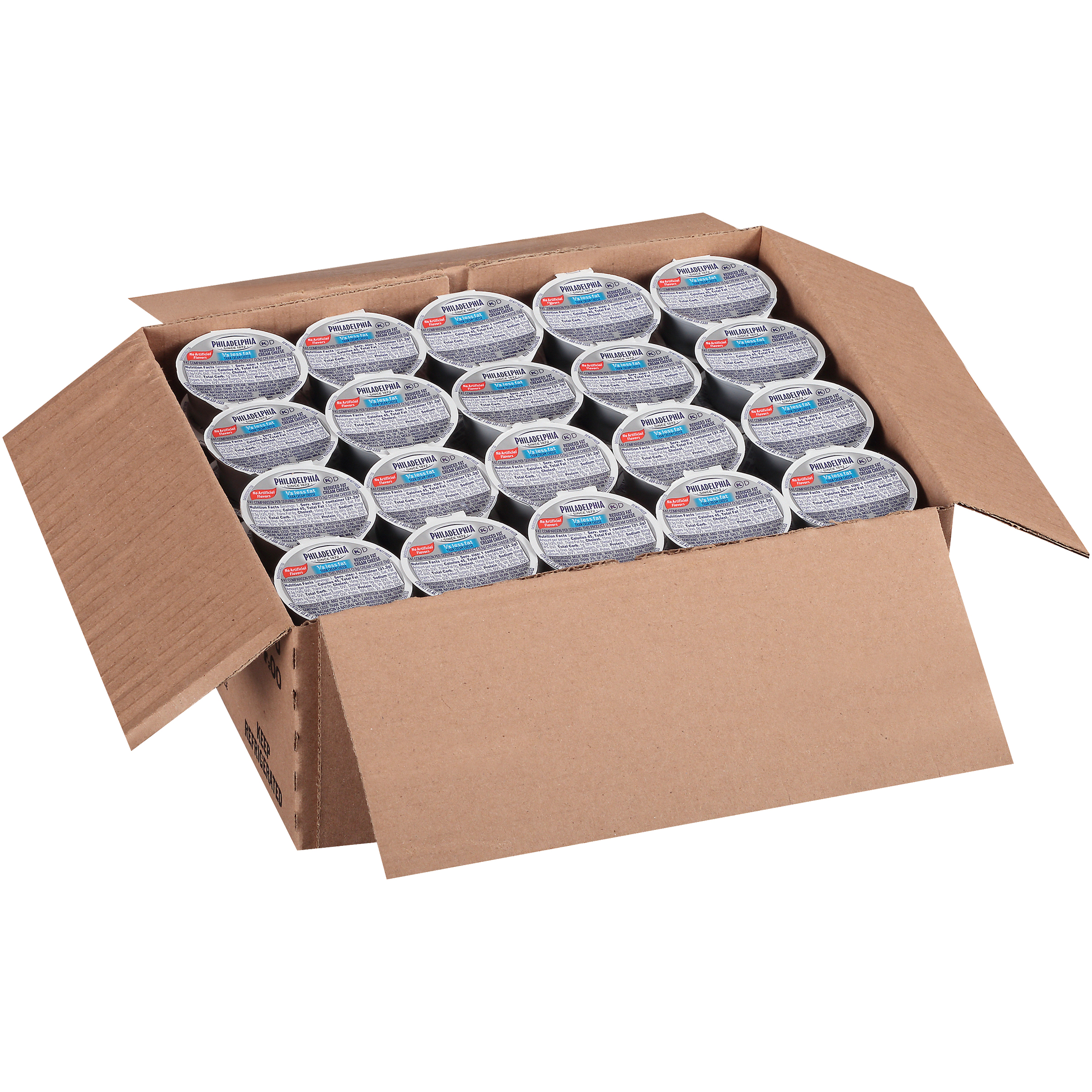 Philadelphia Reduced Fat Cream Cheese Spread 0.75 oz. cups (100 per case) are convenient for commercial kitchens, restaurants, cafeterias, concession stands, takeout, delivery and more. Our reduced fat cream cheese has 1/3 less fat than cream cheese, is creamy, delicious and spreadable. Offer these individual single-serve cream cheese cups to customers alongside a bagel, with room service, takeaway or at a self-serve breakfast bar. Philadelphia Reduced Fat Original Cream Cheese has no artificial preservatives, flavors or dyes. At home and away from home, consumers know and love the great taste of Philadelphia Cream Cheese.