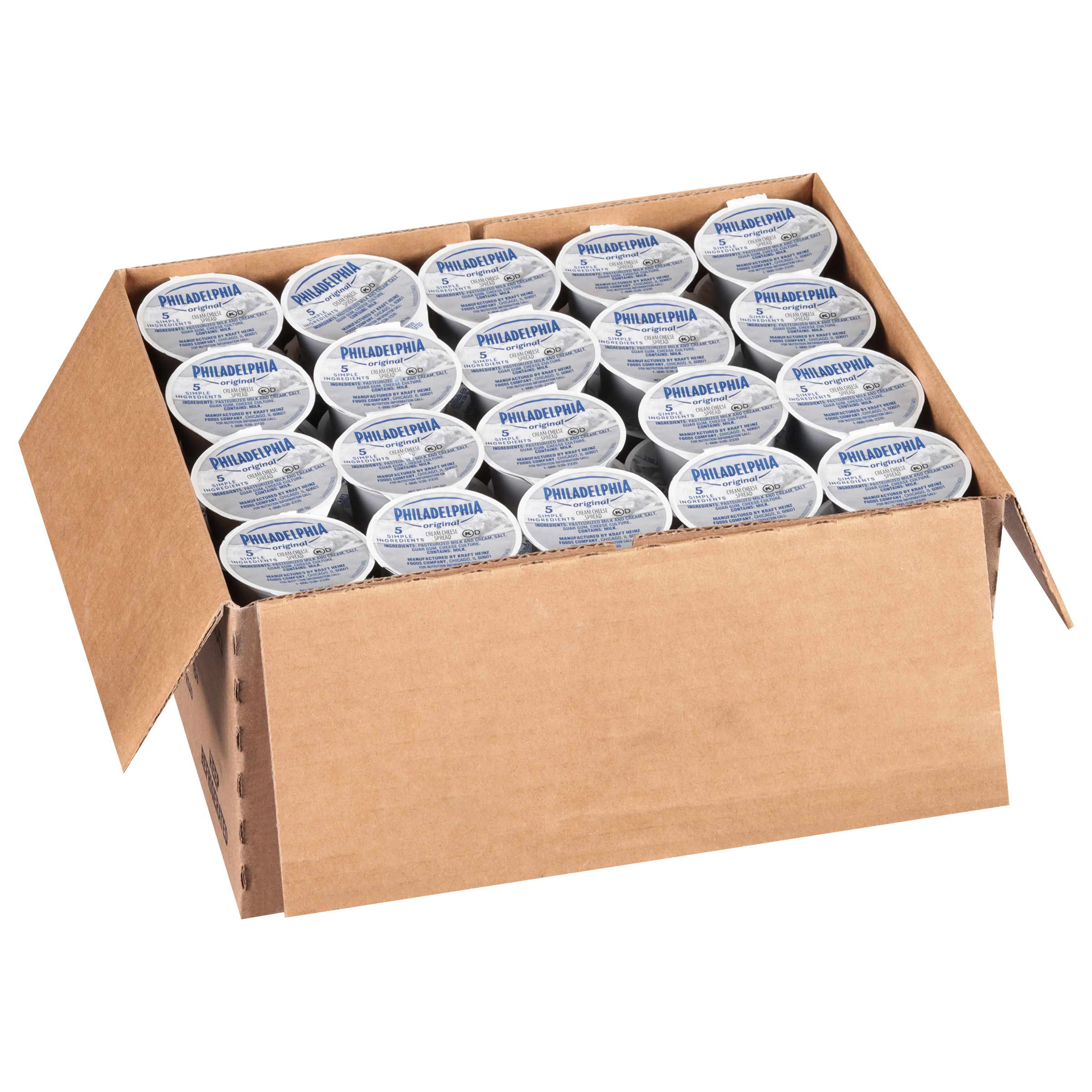 Philadelphia Original Cream Cheese Spread 1 oz. cups (100 per case) are convenient for commercial kitchens, restaurants, cafeterias, concession stands, takeout, delivery and more. Our cream cheese spread is creamy, delicious and spreadable. Offer these individual single-serve cream cheese cups to customers alongside a bagel, with room service, takeaway or at a self-serve breakfast bar. Philadelphia Original Cream Cheese Spread has no artificial preservatives, flavors or dyes. At home and away from home, consumers know and love the great taste of Philadelphia Original Cream Cheese Spread.