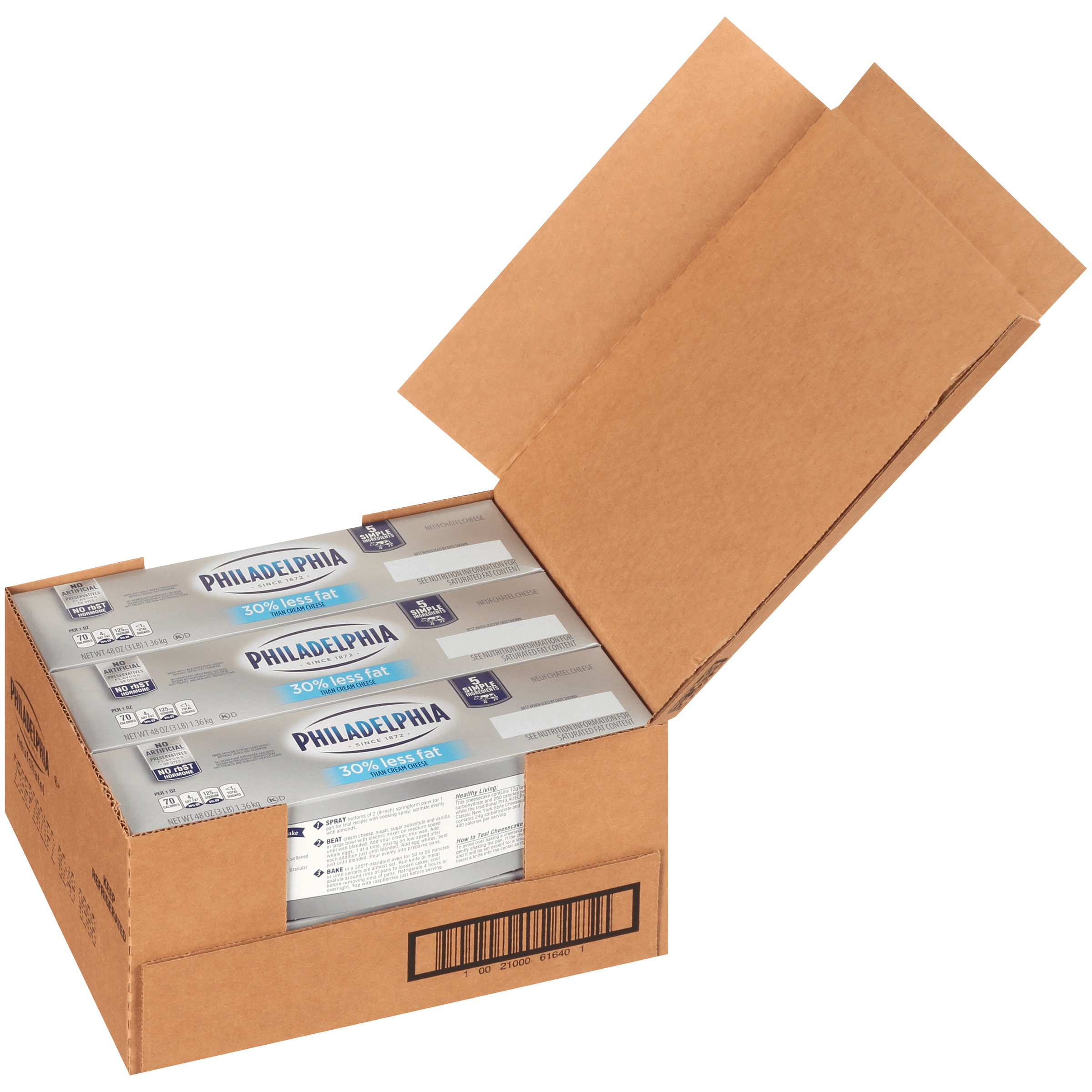 Our Philadelphia Neufchatel Cheese 3 lb. loaves (6 per case) are convenient to use in commercial kitchens, restaurants, large volume recipes and more. Our Neufchatel Cheese is creamy, delicious, spreadable and has 1/3 less fat than Philadelphia Original Cream Cheese. Each 3 lb. loaf is ideal for prepping classic recipes such as cheesecake, frosting, cookies, queso dip and much more. Philadelphia Neufchatel Cheese has no artificial preservatives, flavors or dyes. At home and away from home, consumers know and love the great taste of Philadelphia Neufchatel Cheese.