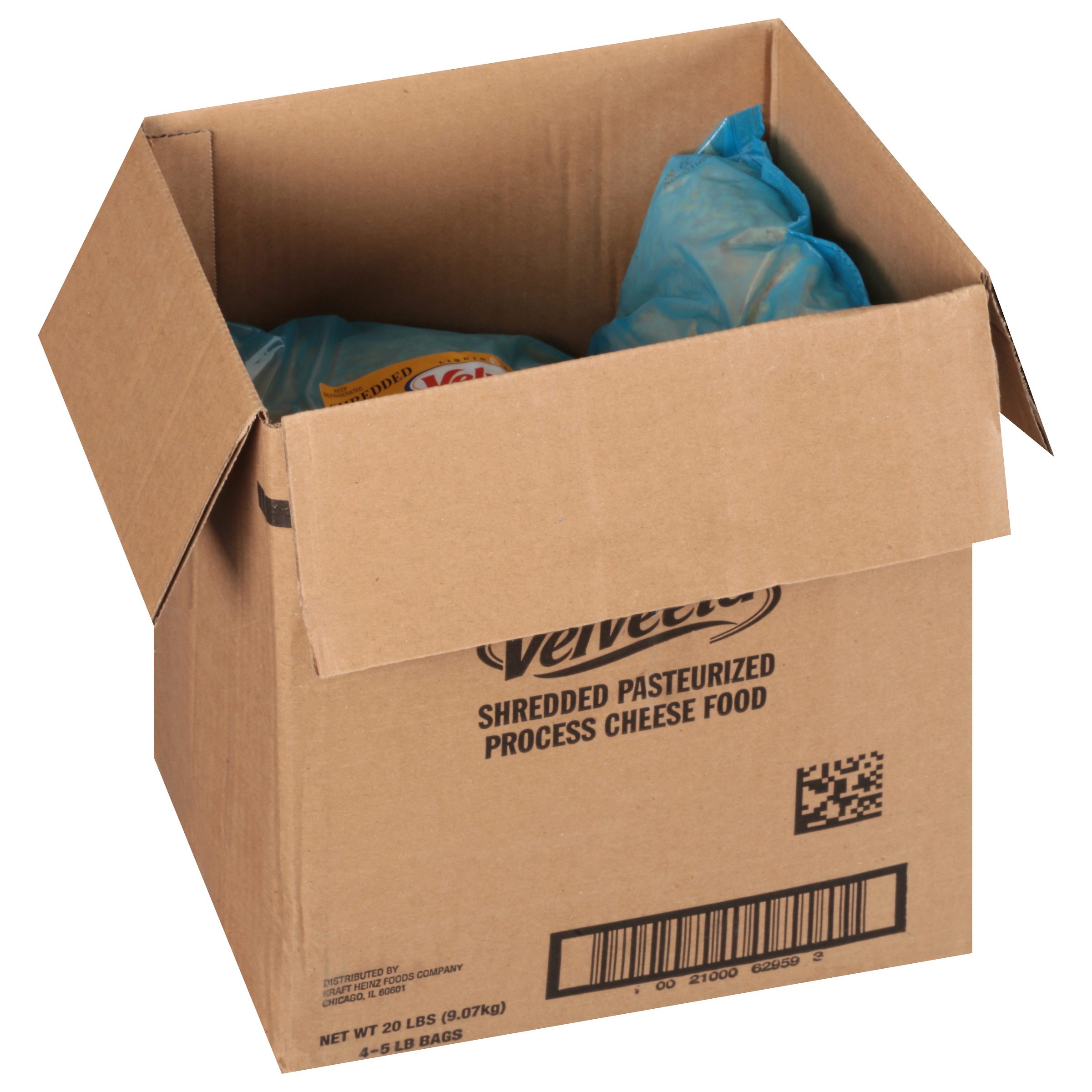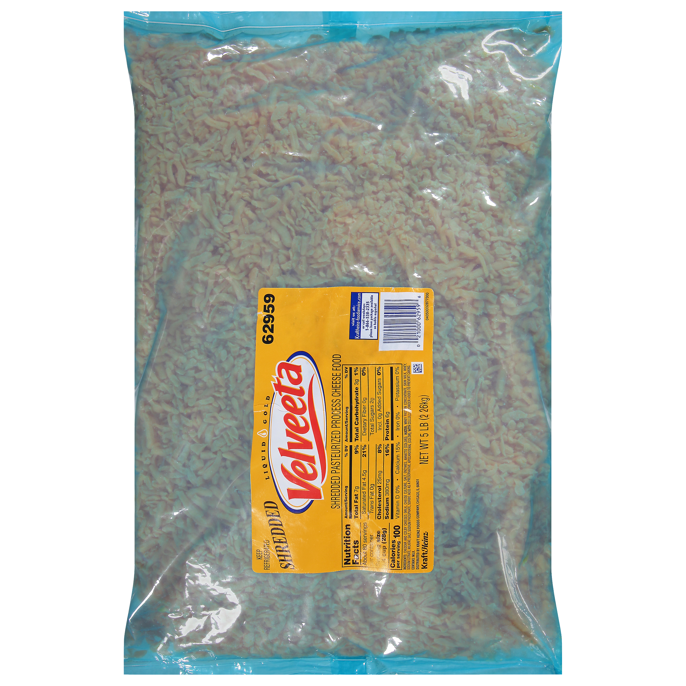 Velveeta Shredded Cheese, 5 lb. bag, Pack of 4. Add a little liquid gold to all your meals with Kraft VELVEETA®. Discover a variety of our products like mini blocks, cheese sauce, dinner kits and more. You can also discover our unique VELVEETA® recipes that your whole family will love.