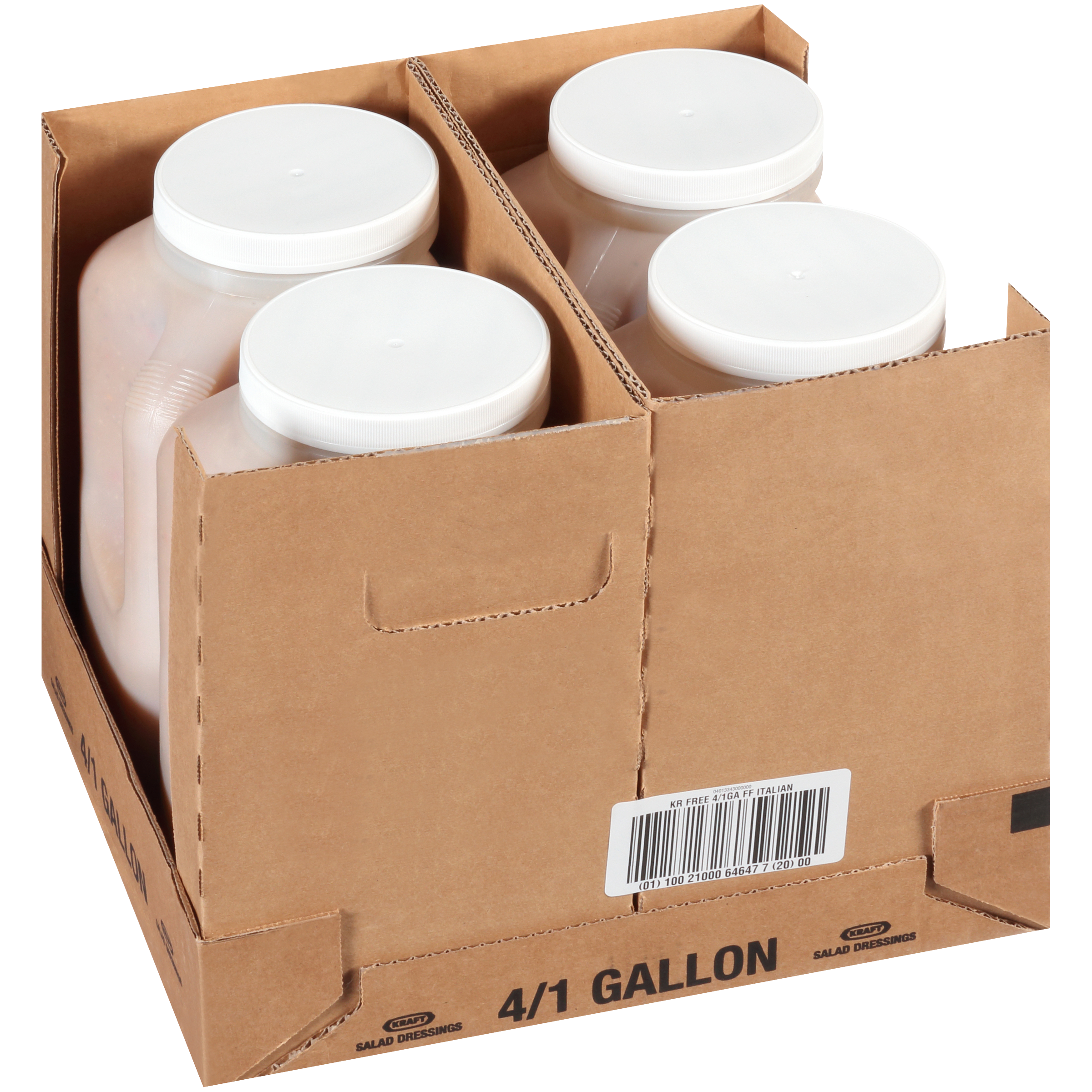 Kraft Fat Free Italian Dressing is a golden dressing with a blend of garlic, red peppers and spice in a fat free version. Use our easy-pour gallon to top salads, prep bottles, and fill ramekins.