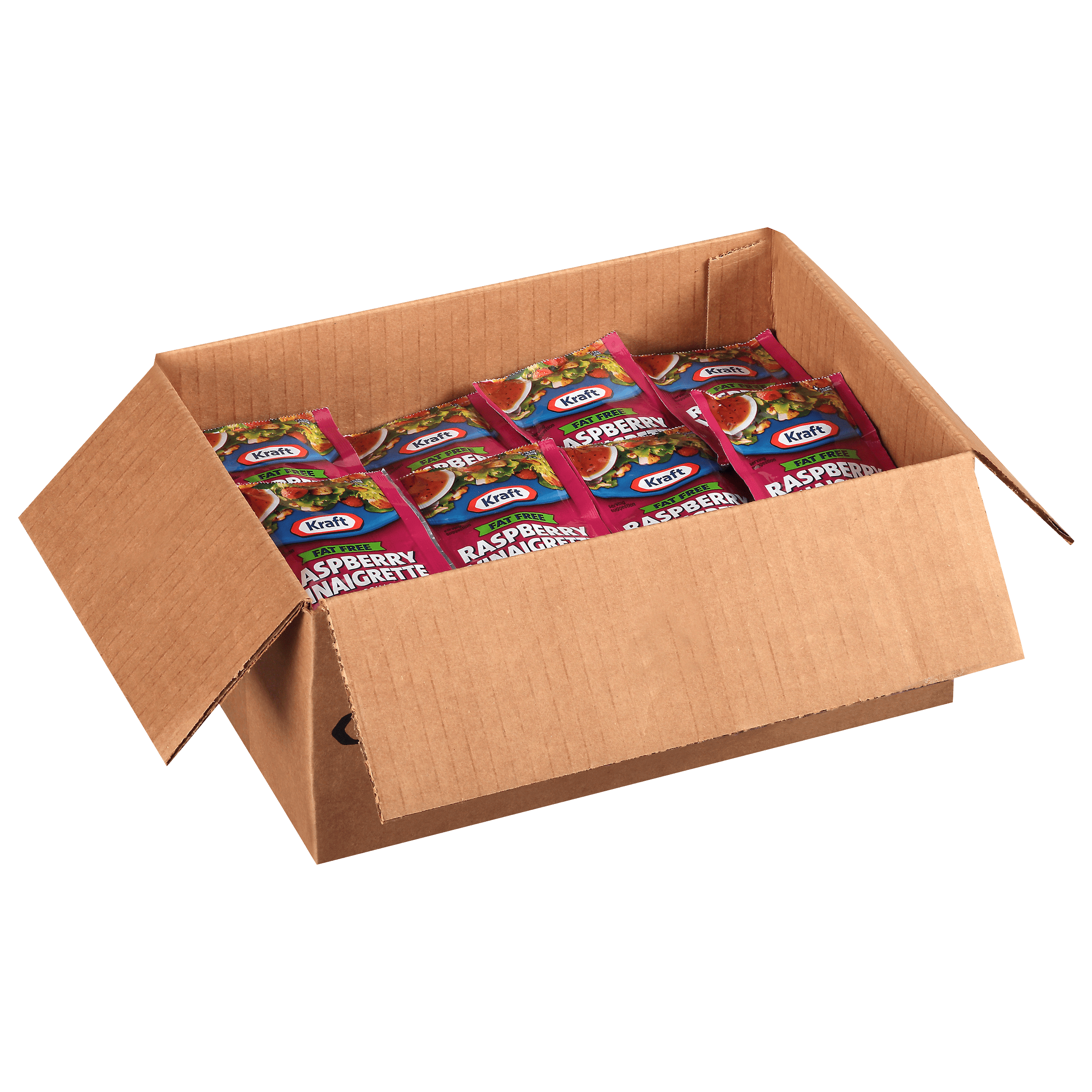 Kraft Fat Free Raspberry Vinaigrette Salad Dressing single-serve packets (60 per case) are ideal for use in concessions, restaurants, cafeterias, commercial kitchens, delivery and takeout food service. Our dressings offer distinctive and balanced flavor, a consistently fresh and vibrant appearance, superior cling and a thick, rich texture. Along with being a delicious addition to vegetable salads, our raspberry vinaigrette dressing is a great topping for hoagies and sandwiches, as a marinade for meat, or an ingredient in pasta salad. Packaged in small, single-serving portions, Kraft dressing packets are a smart way to control costs while providing convenience to consumers. At home and away from home, consumers know and love the great taste of Kraft.