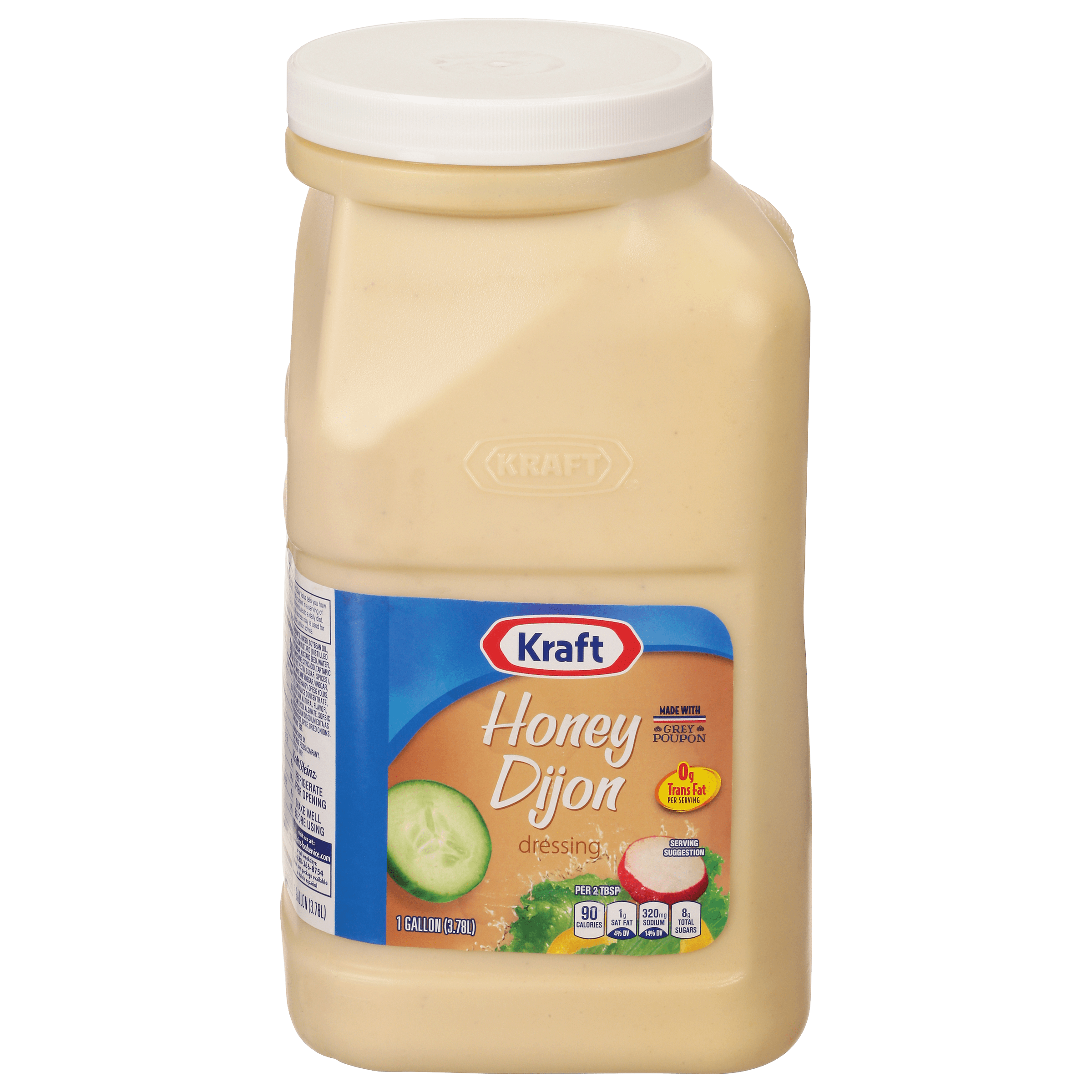 Kraft Signature Honey Dijon Dressing, 1 gal. Jug, Pack of 4. Bring your salad or sandwich to life with Kraft Signature Honey Dijon Dressing. With the delicious taste of Kraft's Signature Honey Dijon Dressing you can create an extraordinary salad, grill like a gourmet or add flavor to your favorite recipes!