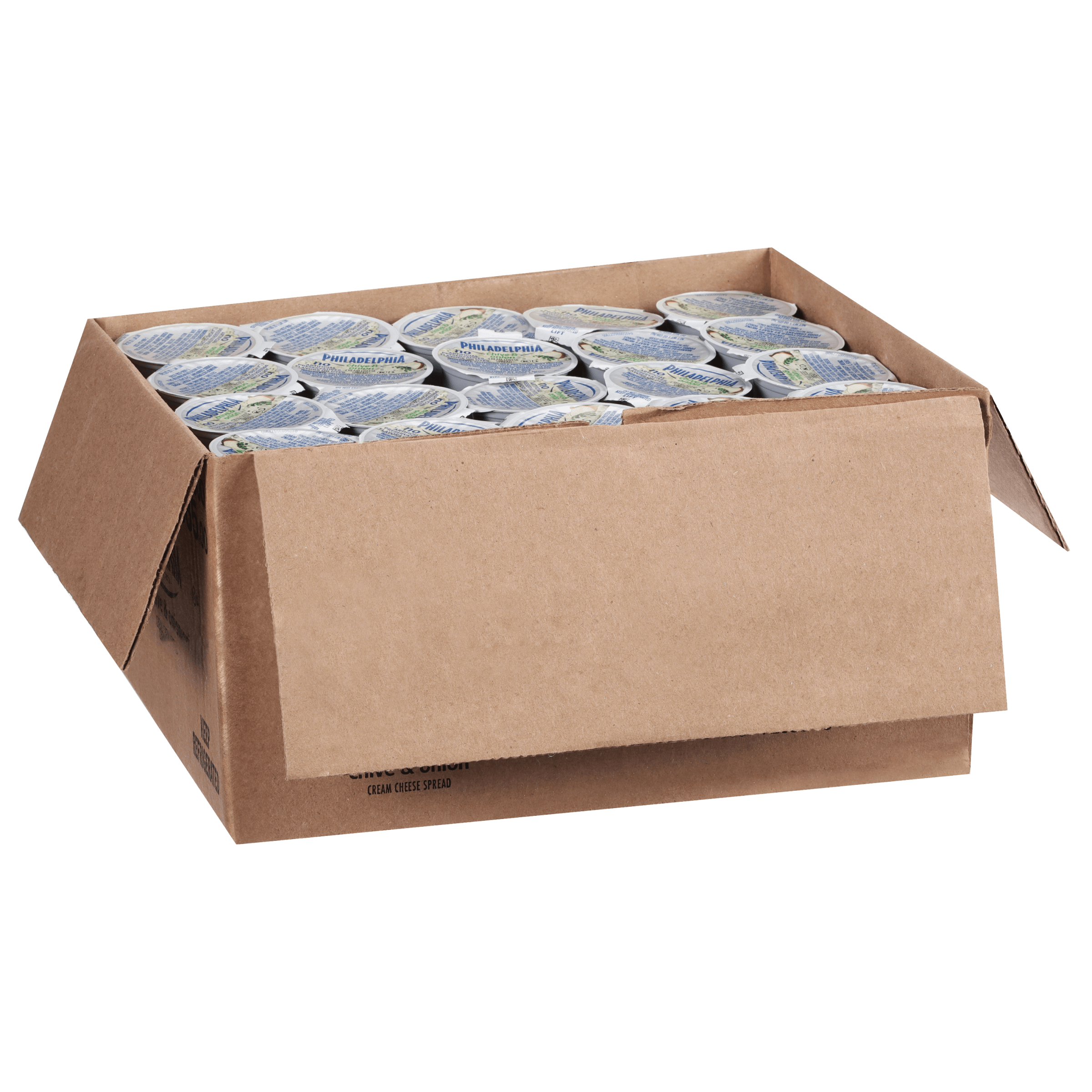 Philadelphia Chive & Onion Cream Cheese Spread 1 oz. cups (100 per case) are convenient for commercial kitchens, restaurants, cafeterias, concession stands, takeout, delivery and more. Our chive and onion cream cheese spread is made with onions, chives plus fresh milk and real cream. Offer these individual single-serve cream cheese cups to customers alongside a bagel, with room service, takeaway or at a self-serve breakfast bar. Philadelphia Chive & Onion Cream Cheese Spread has no artificial preservatives, flavors or dyes. At home and away from home, consumers know and love the great taste of Philadelphia Chive & Onion Cream Cheese Spread.