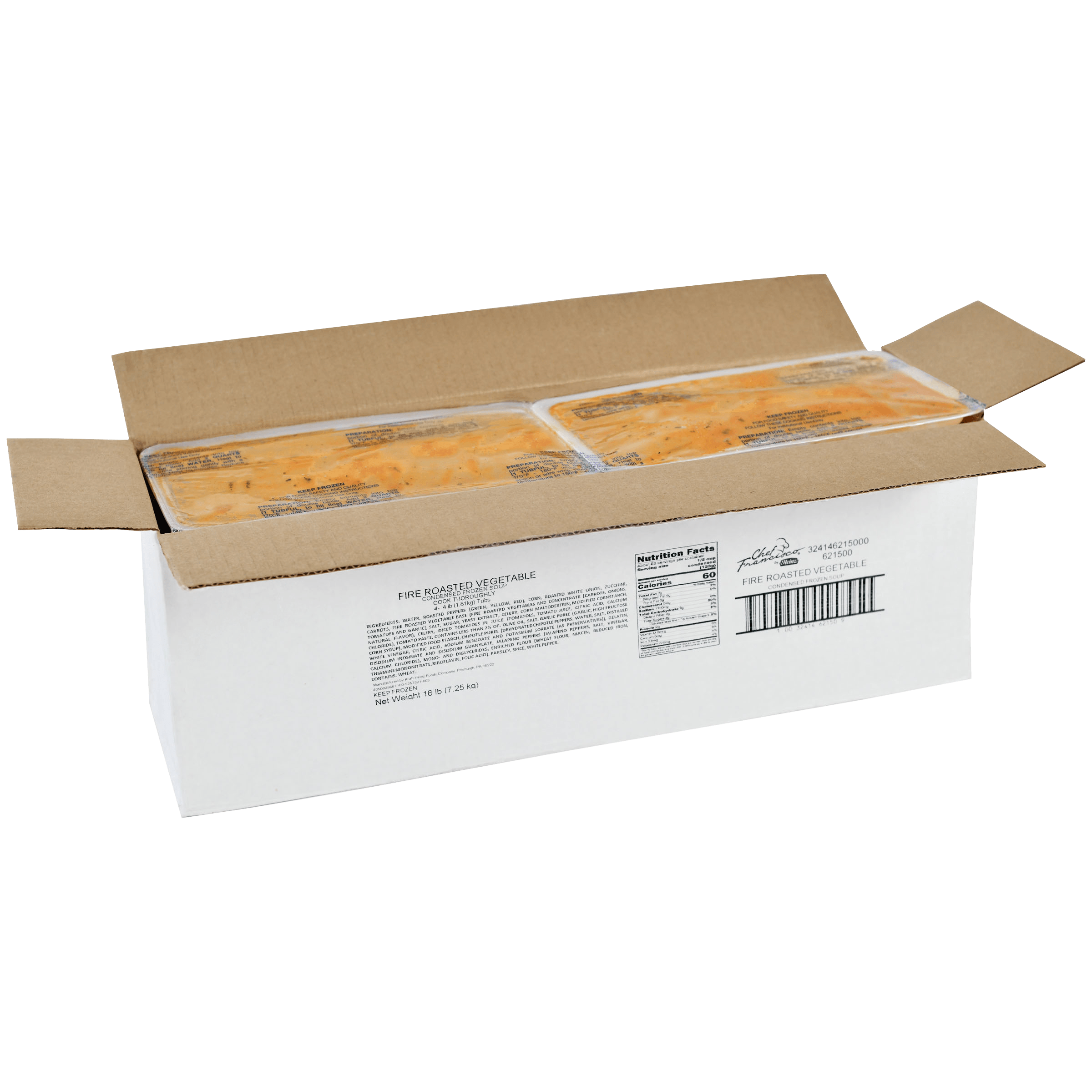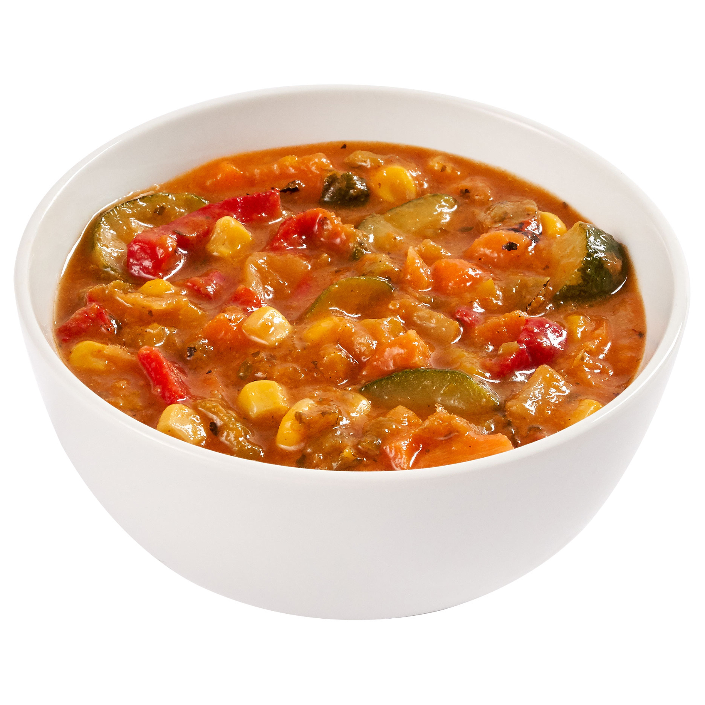 Chef Francisco Fire Roasted Vegetable Soup, 4 lb. Tub, 4 Count. Bursting with garden-fresh flavor, a perfect mix of zucchini, carrots, corn and spinach accompanied by red, green, and yellow peppers. The vegetables are fire roasted then simmered in a zesty tomato-based broth accented with basil, bay leaves and cayenne pepper. Acini di pepe pasta adds a nice touch to this great-tasting soup. Chef Francisco by Heinz pioneered the concept of frozen soup more than 30 year ago. Heinz understands your need for convenient foods that deliver on nutrition, value and versatility. Who can do all that? Heinz Soups can. Our soups can be your partner in the kitchen, helping you solve the challenges you face every day. With cost-effective options that allow you to be creative in the kitchen for your family, Heinz Soups help you to satisfy nutrition program requirements while you create a multitude of appealing and delicious recipes. Discover Heinz Soups. Meet the demands of USDA guidelines for child nutrition with a variety of soups that can satisfy meal equivalent needs and meet today’s lower-sodium menu requirements—whether served as is, or as an integral part of a tasty recipe.