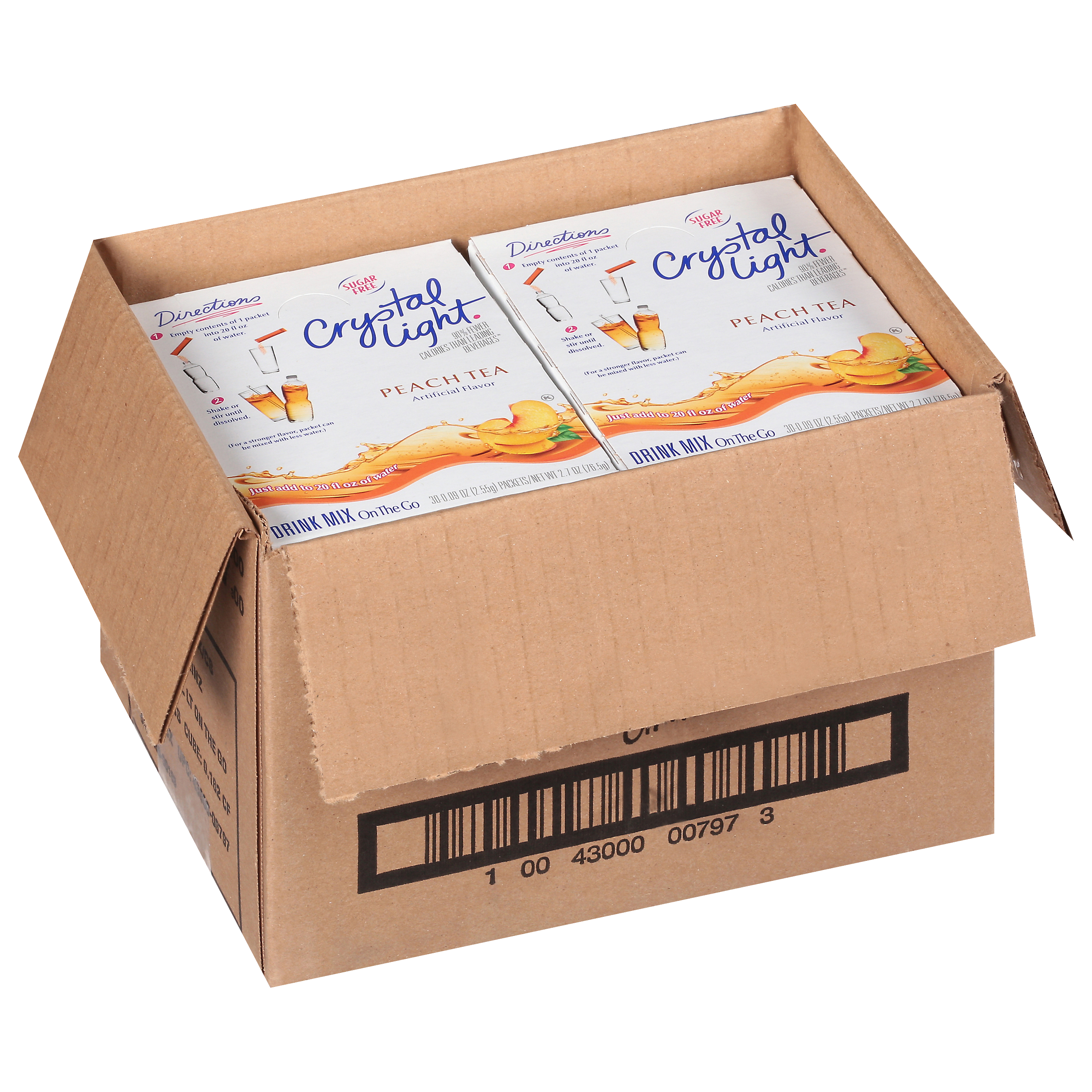 Offer patrons a glass of classic iced tea flavor with a burst of peach with Crystal Light Peach Tea Artificially Flavored Powdered Drink Mix. One case includes 30 individual stick packets per box, 4 boxes per case (for a total of 120 single-serve packets). Our easy-to-use drink mix instantly dissolves when combined with water and is excellent for quick back-of-house preparation in restaurants, concessions, commercial kitchens and more. As the #1 selling, non-carbonated sugar-free drink mix, your customers will enjoy Crystal Light's delicious fresh peach tea flavor. With zero grams of sugar and only 10 calories per serving, Crystal Light is a sweet alternative to juice and soda, with 90 percent fewer calories than leading beverages. Perfect for serving with salads, picnic food, barbecue, burgers, hot dogs and just about anything, this bulk pack of Crystal Light Peach Tea On-the-Go Mix is a dynamic choice for foodservice. At home and away from home, consumers know and love the great taste of Crystal Light.