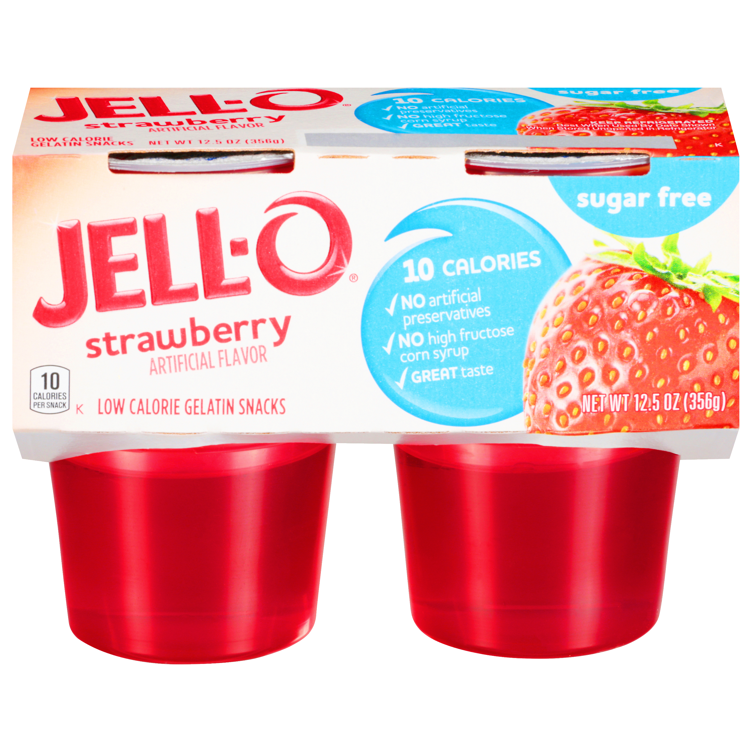 Jell-O Ready-to-Eat Gelatin Sugar Free Strawberry, 12.5 oz Cups. Great for todays busy lifestyles. Perfect as a snack or dessert throughout the day. Great flavors, portable cups make Jell-OReady-to-Eat desserts the perfect sweet snack. Sugar Free and