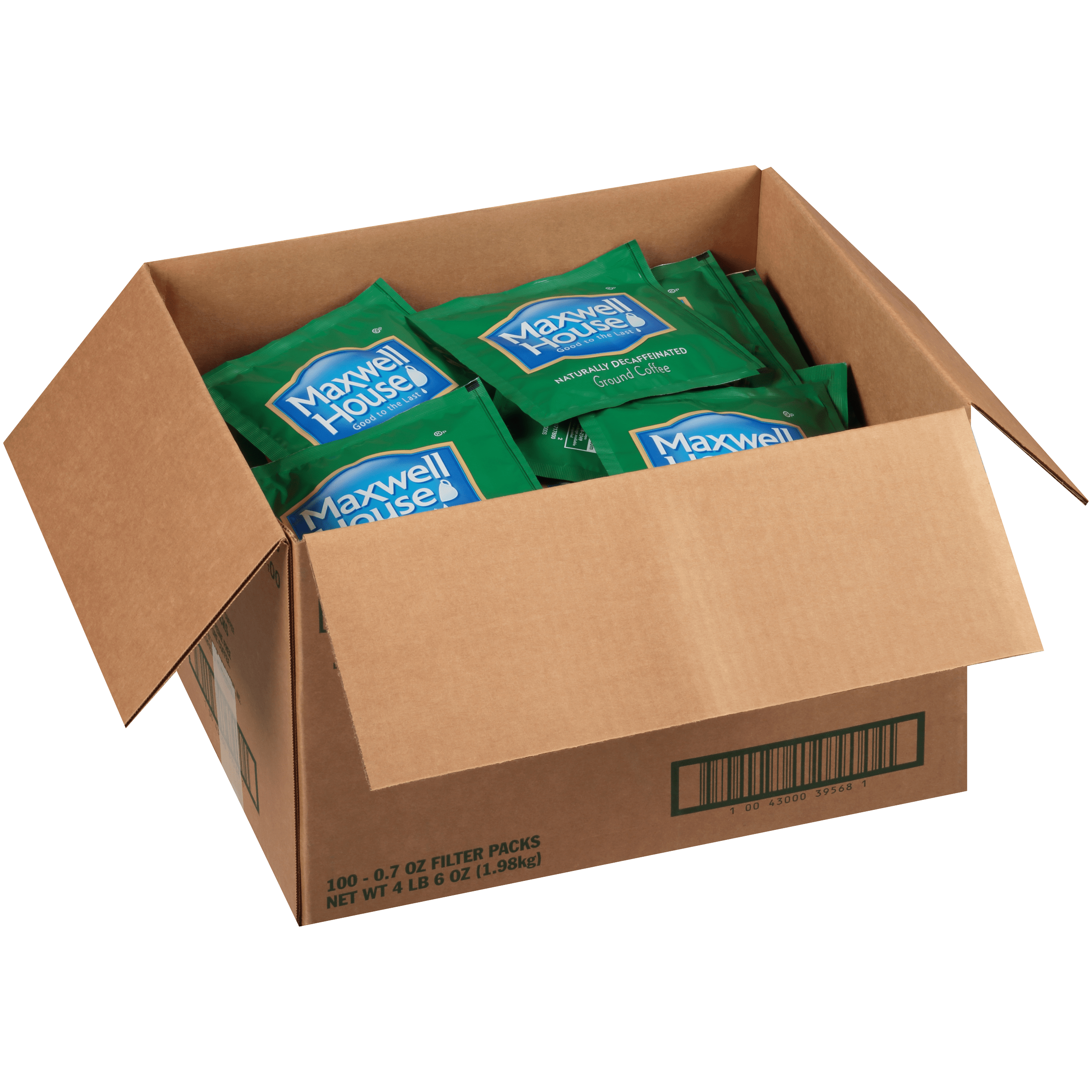 Maxwell House Decaffeinated Ground Coffee, 0.7 oz. packets (100 per case) are ideal for self-serve coffee stations. Whether supplied at diners, restaurants, hotels, lobbies or break rooms, Maxwell House coffee has the perfect balance of strength and flavor for a classic, smooth taste. Trusted by generations of coffee drinkers, our ground decaf coffee has a consistently great taste that’s good to the last drop. Each one of our 0.7 oz. ready-to-brew filter packets is specially blended with rich, premium-quality beans, making them the ideal coffee choice in the morning or anytime. Each box comes with 112 packets of aromatic, flavorful coffee packets that make it simple to serve customers quickly and effectively. At home and away from home, consumers know and love the great taste of Maxwell House.