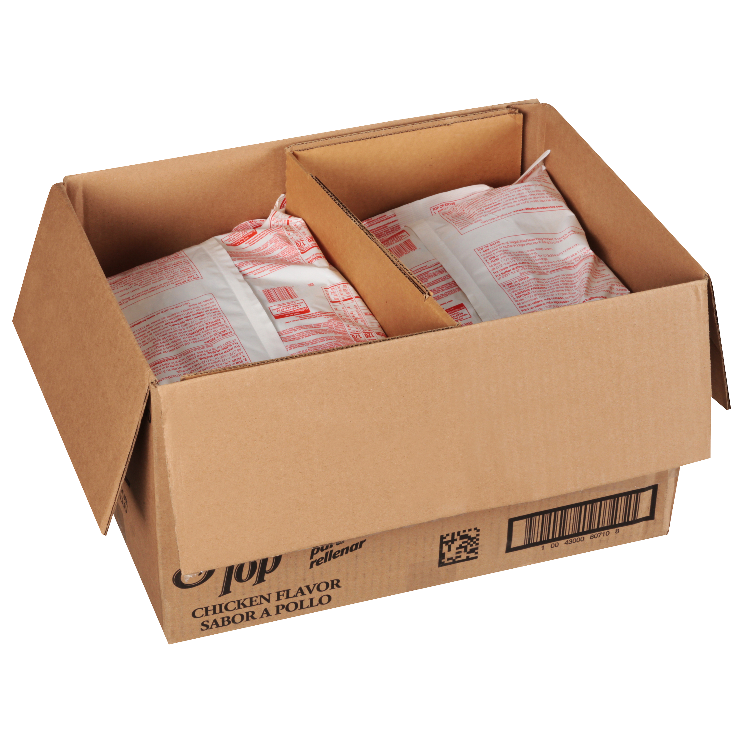 Stove Top Chicken Stuffing Mix 3.6 lb. bag (6 per case) is a delicious dinner solution for every season. Ideal for use in restaurants, commercial kitchens, cafeterias and more, our stuffing is made with buttery bread crumbs, cooked chicken, onions, celery and other spices. Perfect as a savory year-round side dish, an addition to bulk recipes, or stuffed inside a Thanksgiving turkey, Stove Top offers a homestyle taste with rich chicken flavor and a touch of herbs and spices. Easier to prepare than scratch stuffing, your patrons will enjoy the homemade taste of our delicious side dish. At home and away from home, consumers know and love the great taste of Stove Top.