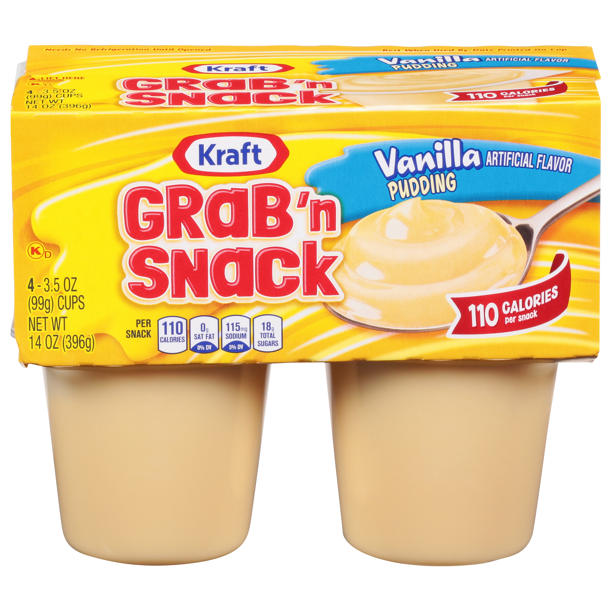 Kraft Grab 'n Snack Vanilla Pudding, 3.5 oz. cups (12 packs of 4 cups per case) are a deliciously creamy dessert option that both kids and adults crave. With only 110 calories per serving, our tasty pudding snack packs are a smart choice for cafeterias, restaurants, school programs and more. Made with real milk, Kraft vanilla pudding cups deliver a sweet vanilla flavor in a perfectly creamy, spoonable dessert format. Featuring a sturdy, portable package with a peel-back lid, Kraft pudding snacks allow customers to take their dessert along with them. Perfect for on-the-go, packed into a lunchbox or bag, or to easily enjoy wherever the craving strikes. At home and away from home, consumers know and love the great taste of Kraft.