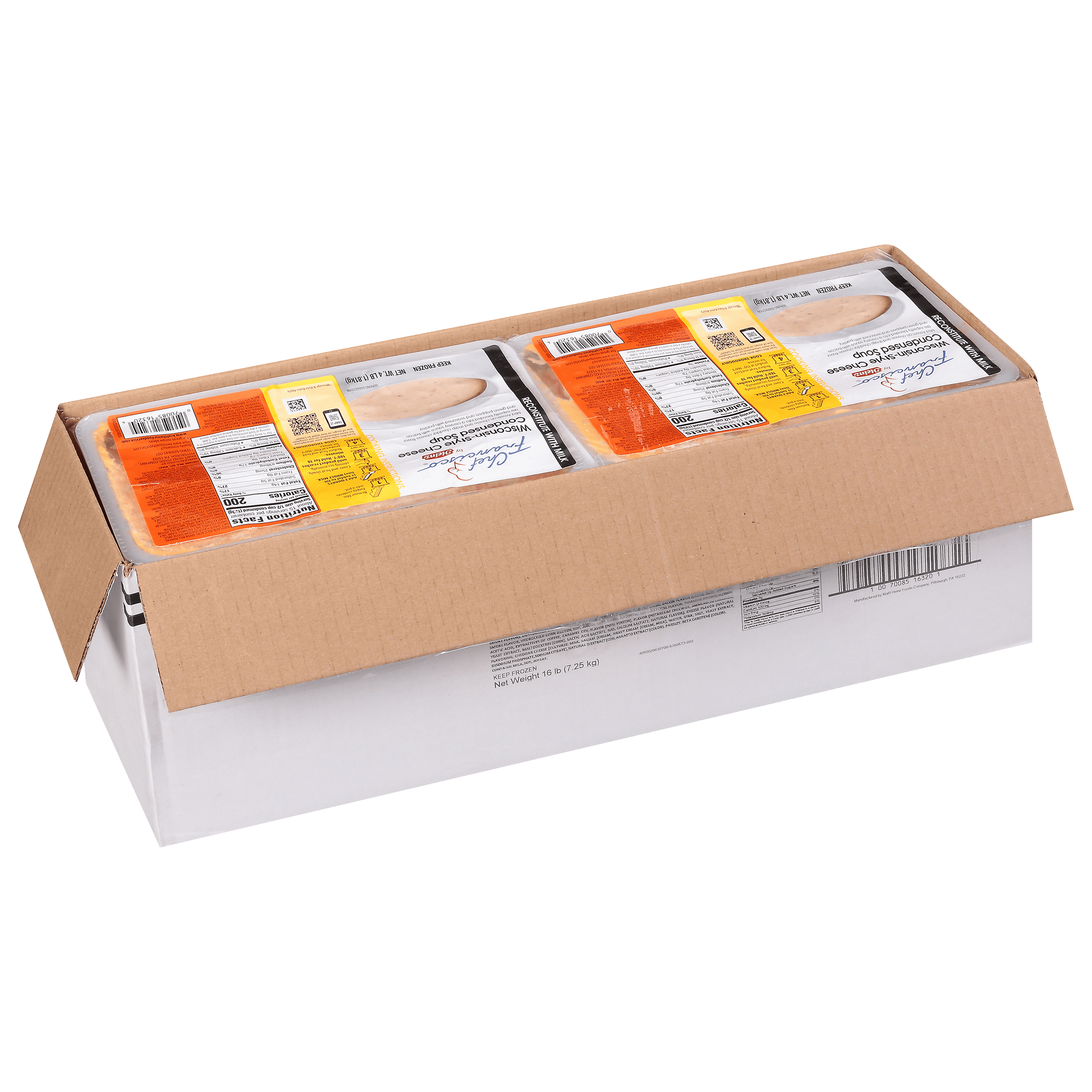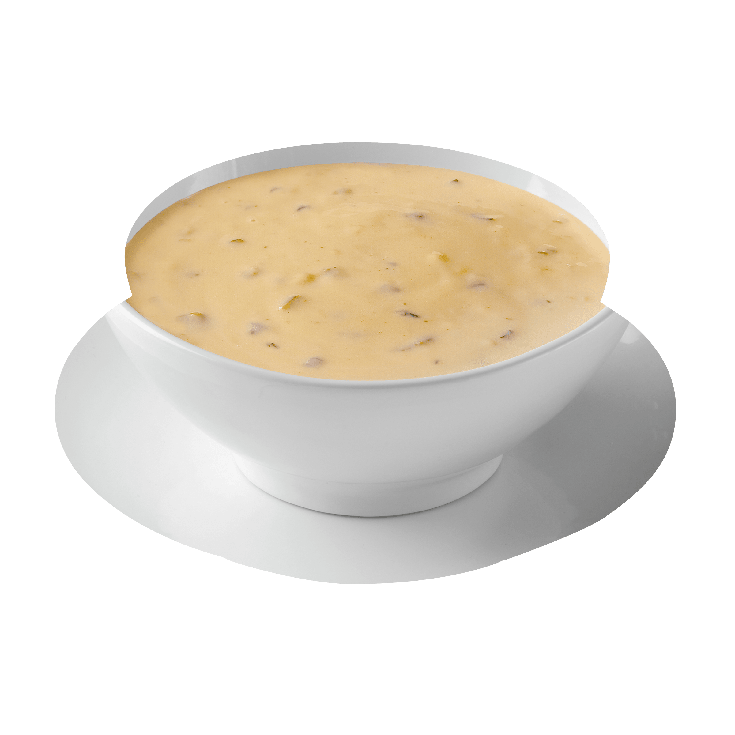Chef Francisco Wisconsin Cheese Soup - 4 lb. tub, 4 per case Mild American and sharp Cheddar cheeses are expertly blended into a creamy sauce seasoned with parsley and garlic. This soup features generous amounts of bacon, green bell pepper, celery crescents and onions. Frozen, Condensed Chef Francisco by Heinz pioneered the concept of frozen soup more than 30 year ago. Heinz understands your need for convenient foods that deliver on nutrition, value and versatility. Who can do all that? Heinz Soups can. Our soups can be your partner in the kitchen, helping you solve the challenges you face every day. With cost-effective options that allow you to be creative in the kitchen for your family, Heinz Soups help you to satisfy nutrition program requirements while you create a multitude of appealing and delicious recipes. Discover Heinz Soups. Meet the demands of USDA guidelines for child nutrition with a variety of soups that can satisfy meal equivalent needs and meet today’s lower-sodium menu requirements—whether served as is, or as an integral part of a tasty recipe.