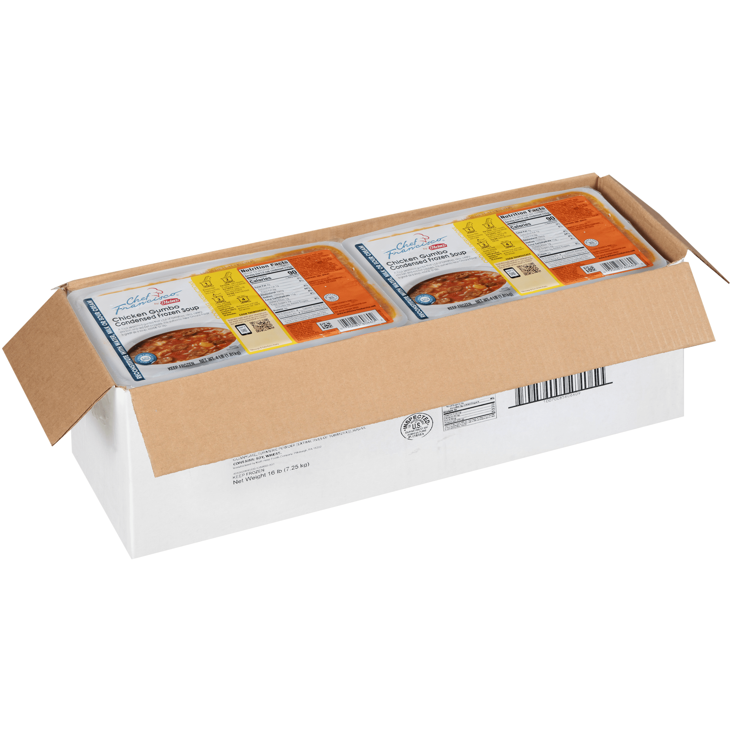 Chef Francisco Chicken Gumbo Soup, 4 lb. Tub, 4 Count. This is a thick, seasoned gumbo that's full of tomatoes, okra, celery, chicken and red bell peppers. Chef Francisco by Heinz pioneered the concept of frozen soup more than 30 year ago. Heinz understands your need for convenient foods that deliver on nutrition, value and versatility. Who can do all that? Heinz Soups can. Our soups can be your partner in the kitchen, helping you solve the challenges you face every day. With cost-effective options that allow you to be creative in the kitchen for your family, Heinz Soups help you to satisfy nutrition program requirements while you create a multitude of appealing and delicious recipes. Discover Heinz Soups. Meet the demands of USDA guidelines for child nutrition with a variety of soups that can satisfy meal equivalent needs and meet today’s lower-sodium menu requirements—whether served as is, or as an integral part of a tasty recipe.
