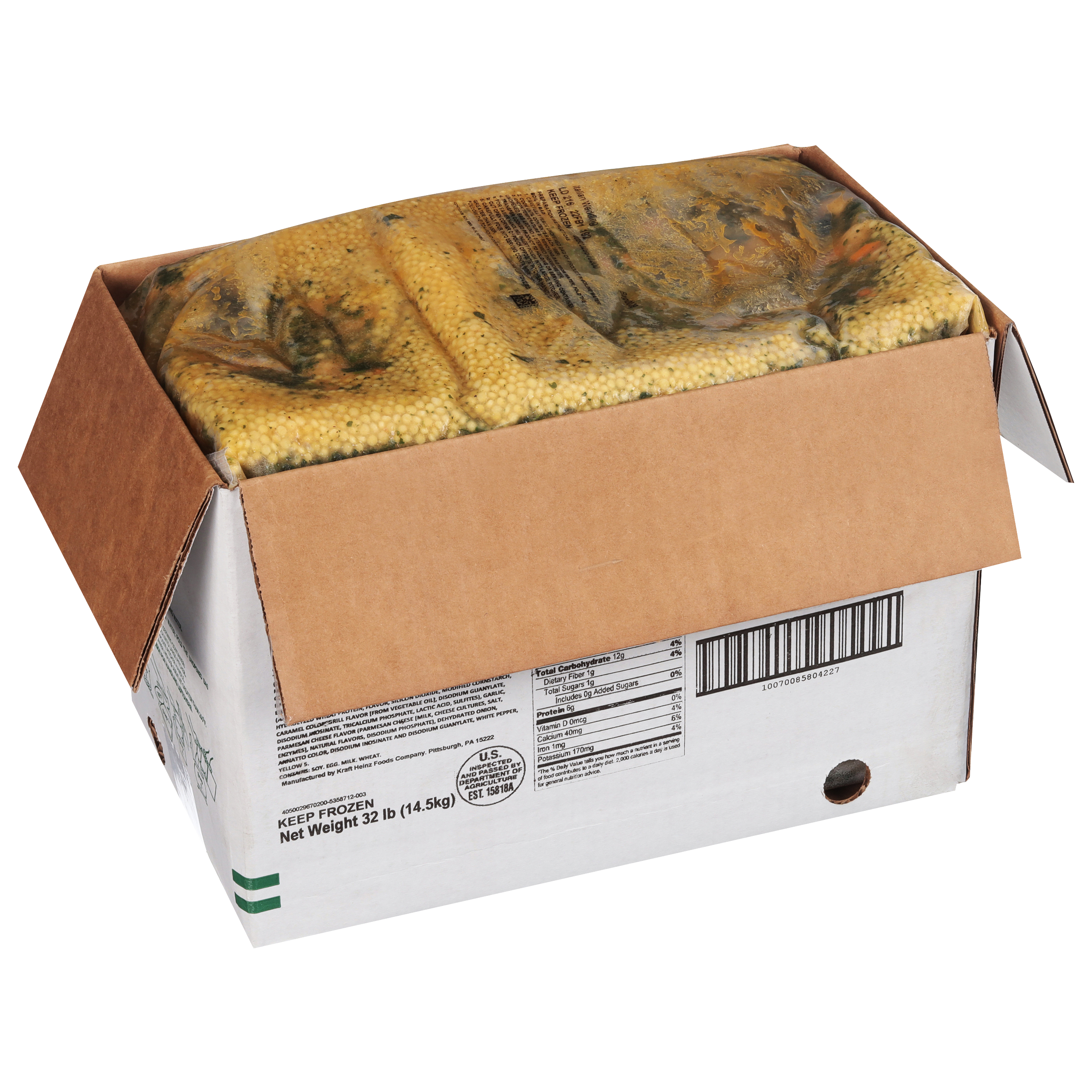 Chef Francisco Italian Style Wedding Soup, 8 lb. Bag, 4 Count. A unique specialty soup containing pasta, miniature meatballs, onions, spinach and carrots in a tasty chicken broth. Chef Francisco by Heinz pioneered the concept of frozen soup more than 30 year ago. Heinz understands your need for convenient foods that deliver on nutrition, value and versatility. Who can do all that? Heinz Soups can. Our soups can be your partner in the kitchen, helping you solve the challenges you face every day. With cost-effective options that allow you to be creative in the kitchen for your family, Heinz Soups help you to satisfy nutrition program requirements while you create a multitude of appealing and delicious recipes. Discover Heinz Soups. Meet the demands of USDA guidelines for child nutrition with a variety of soups that can satisfy meal equivalent needs and meet today’s lower-sodium menu requirements—whether served as is, or as an integral part of a tasty recipe.