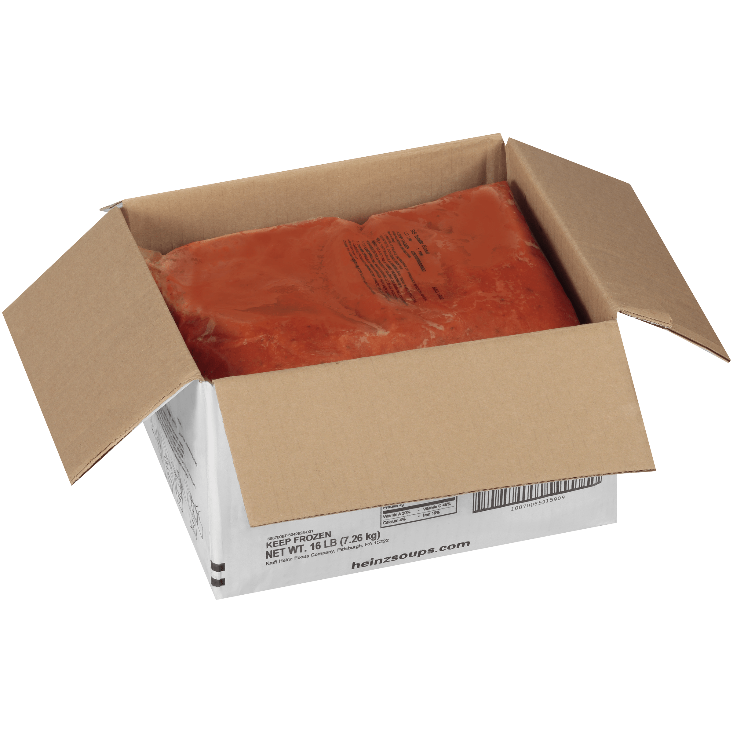 HEINZ Reduced Sodium Tomato Basil Soup, 4 lb. Bag, 4 Count. Fresh, ripe tomatoes, basil and onions with a hint of ground white pepper. A touch of heavy cream gives this soup a smooth, rich finish that lingers on the palate. Frozen, Ready to Heat 8 Pound Heinz understands your need for convenient foods that deliver on nutrition, value and versatility. Who can do all that? Heinz Soups can. Our soups can be your partner in the kitchen, helping you solve the challenges you face every day. With cost-effective options that allow you to be creative in the kitchen for your family, Heinz Soups help you to satisfy nutrition program requirements while you create a multitude of appealing and delicious recipes. Discover Heinz Soups. Meet the demands of USDA guidelines for child nutrition with a variety of soups that can satisfy meal equivalent needs and meet today’s lower-sodium menu requirements—whether served as is, or as an integral part of a tasty recipe.