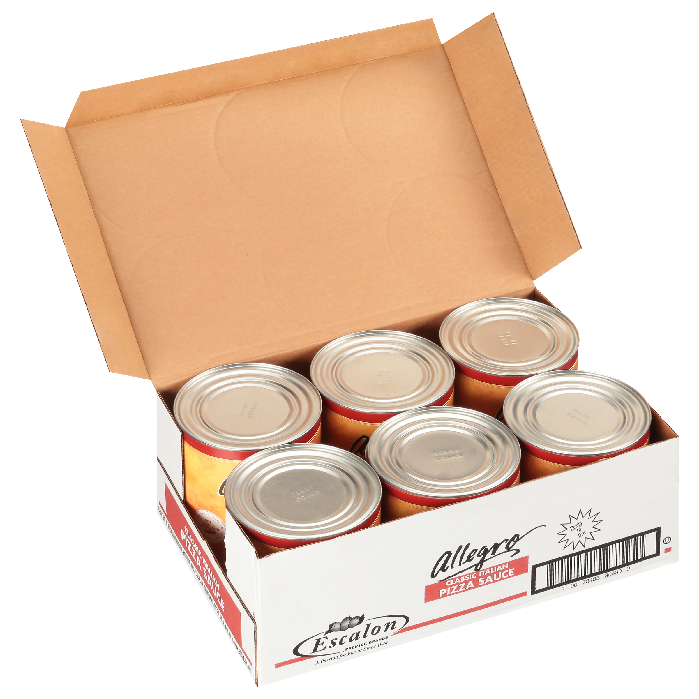 A reliable go-to for pizza and pasta restaurants, Allegro Classic Italian Pizza Sauce is packaged in 105 oz. #10 cans (6 per case) for extended shelf life and convenient use in large-volume recipes. Ideal for commercial kitchens, restaurants, fast food, cafeterias, concessions and more, this bulk product combines a true Italian flavor profile with a silky smooth texture. Made with ripe, juicy California tomatoes, extra virgin olive oil and a blend of traditional spices, Allegro Pizza Sauce is a great start to making any dish delicious. Use it as a pizza sauce, dipping sauce for garlic bread, a tasty topping on a meatball sub and more. At home and away from home, consumers know and love the great taste of Allegro.