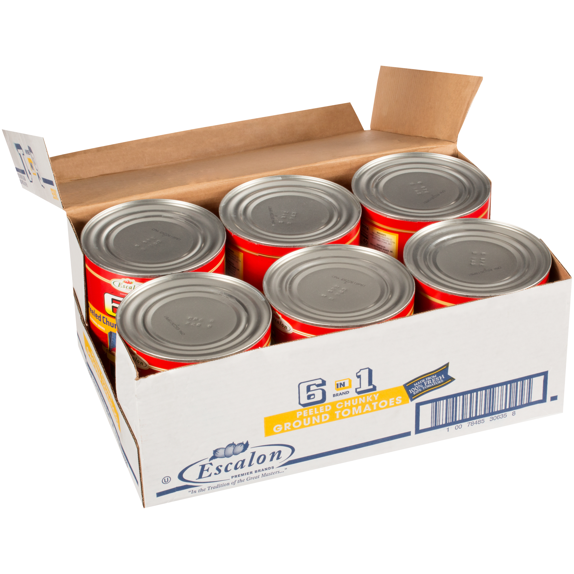 A longtime favorite of pizza and pasta restaurants, 6 in 1 All Purpose Ground Tomatoes are packaged in 105 oz. cans (6 per case) for extended shelf life and convenient use in large volume recipes. Ideal for commercial kitchens, restaurants, cafeterias and more, our bulk tomatoes feature a sweet flavor, bright natural color and thick, rich consistency with no added citric acid. Made with only vine-ripened, peeled ground tomatoes, extra-heavy tomato purée and a touch of salt, 6 in 1 is a highly versatile product that can be used in everything from pizza and pasta sauce to salsa and soup. At home and away from home, consumers know and love the great taste of 6 in 1.
