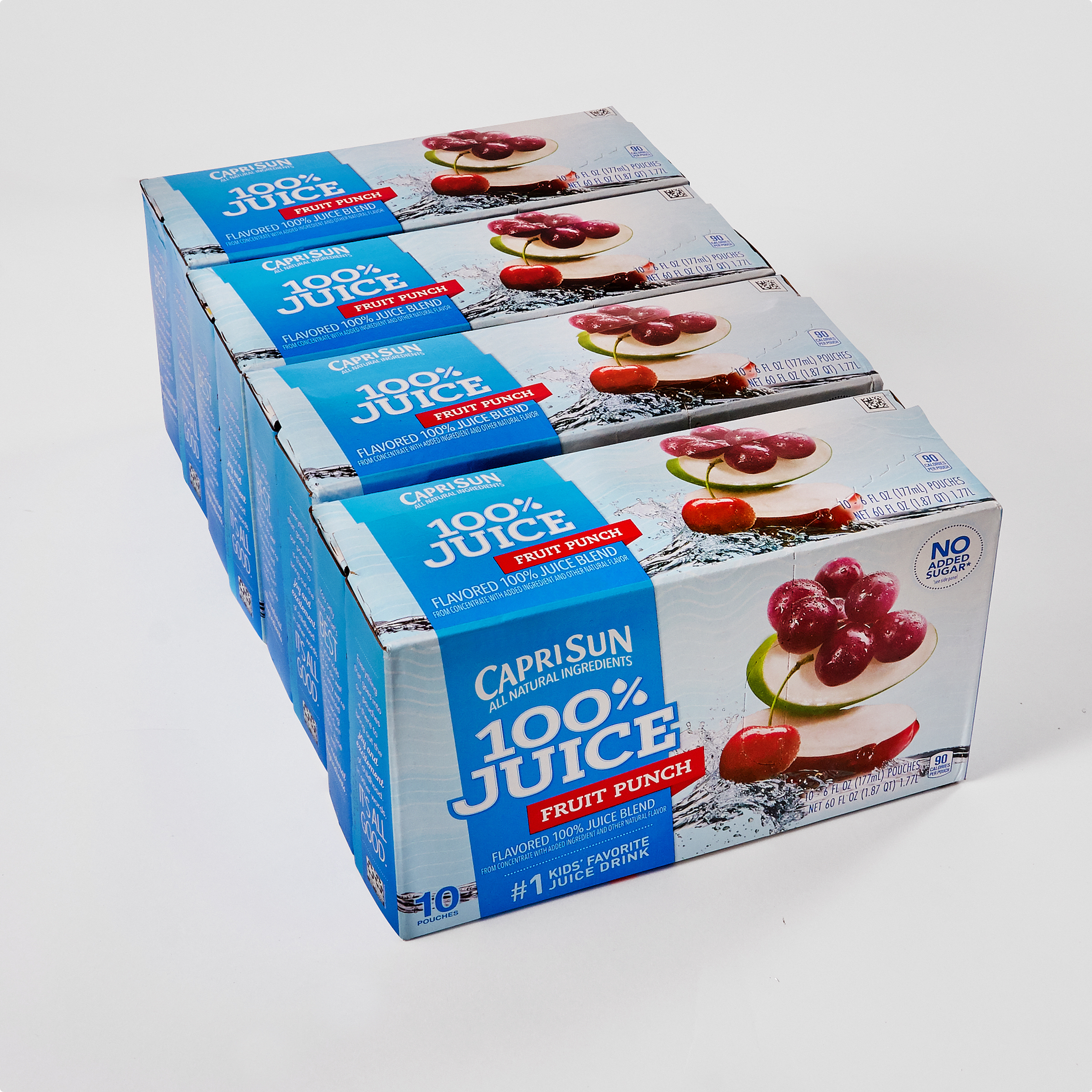 Our Capri Sun Fruit Punch Flavored 100% Juice Blend From Concentrate With Added Ingredient and Other Natural Flavor, 6 oz. pouches, (40 Per Case) are great for cafeterias, concessions, school lunches, picnics, field trips, school events, birthday parties and more. Ready to drink right from the pouch, this kids juice blend captures the ripe, crisp flavor of apples, grapes and cherries for a classic taste kids will love. Each fruit punch juice blend pouch is made with no added sugar and without artificial flavors, colors, preservatives or high fructose corn syrup (not a low calorie food; see nutrition information for calorie and sugar content). Our fruit juice blend comes in a portable six fluid ounce pouch with an attached straw. At home and away from home, consumers know and love the great taste of Capri Sun.